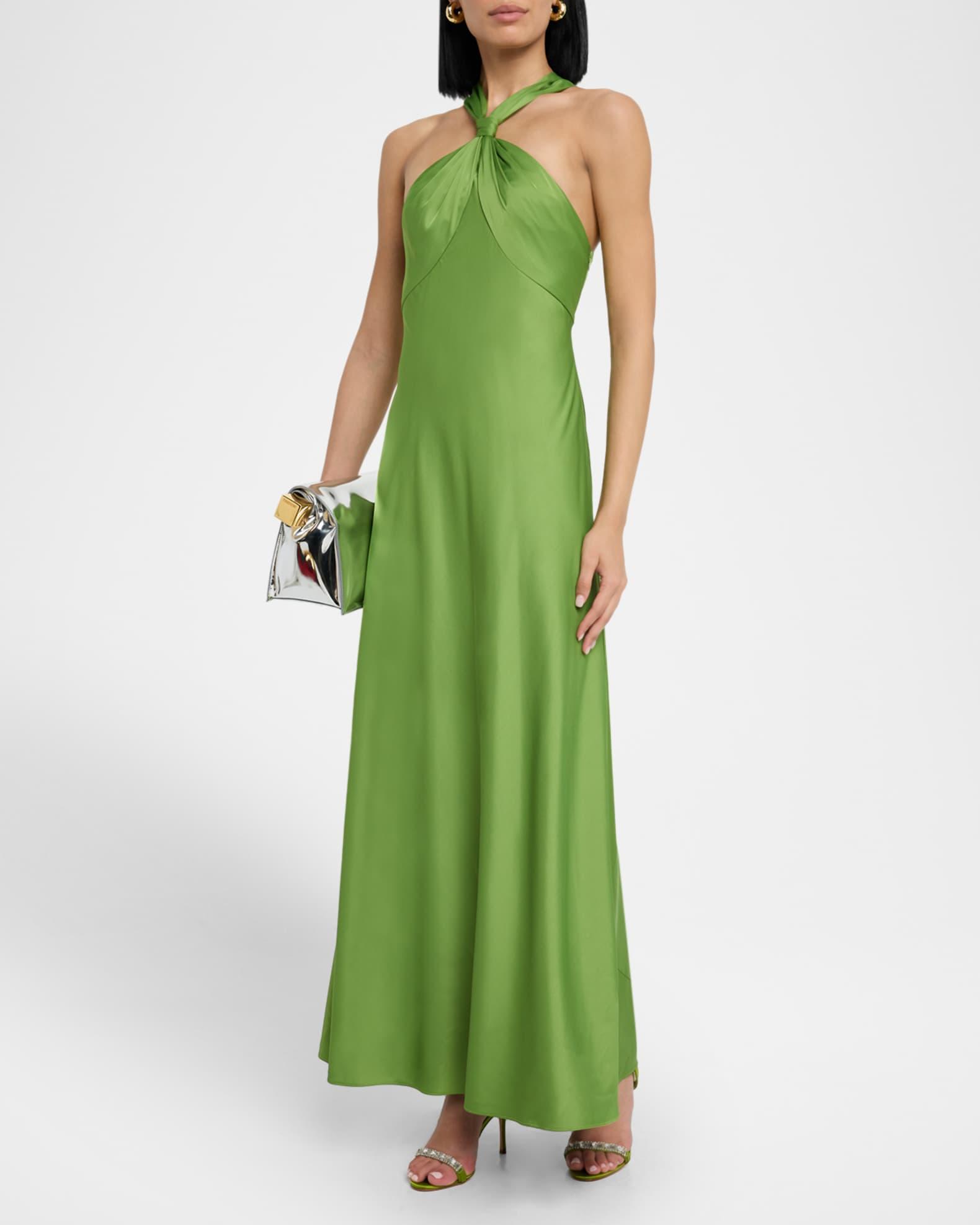 Knot-Embellished Satin Halter Gown