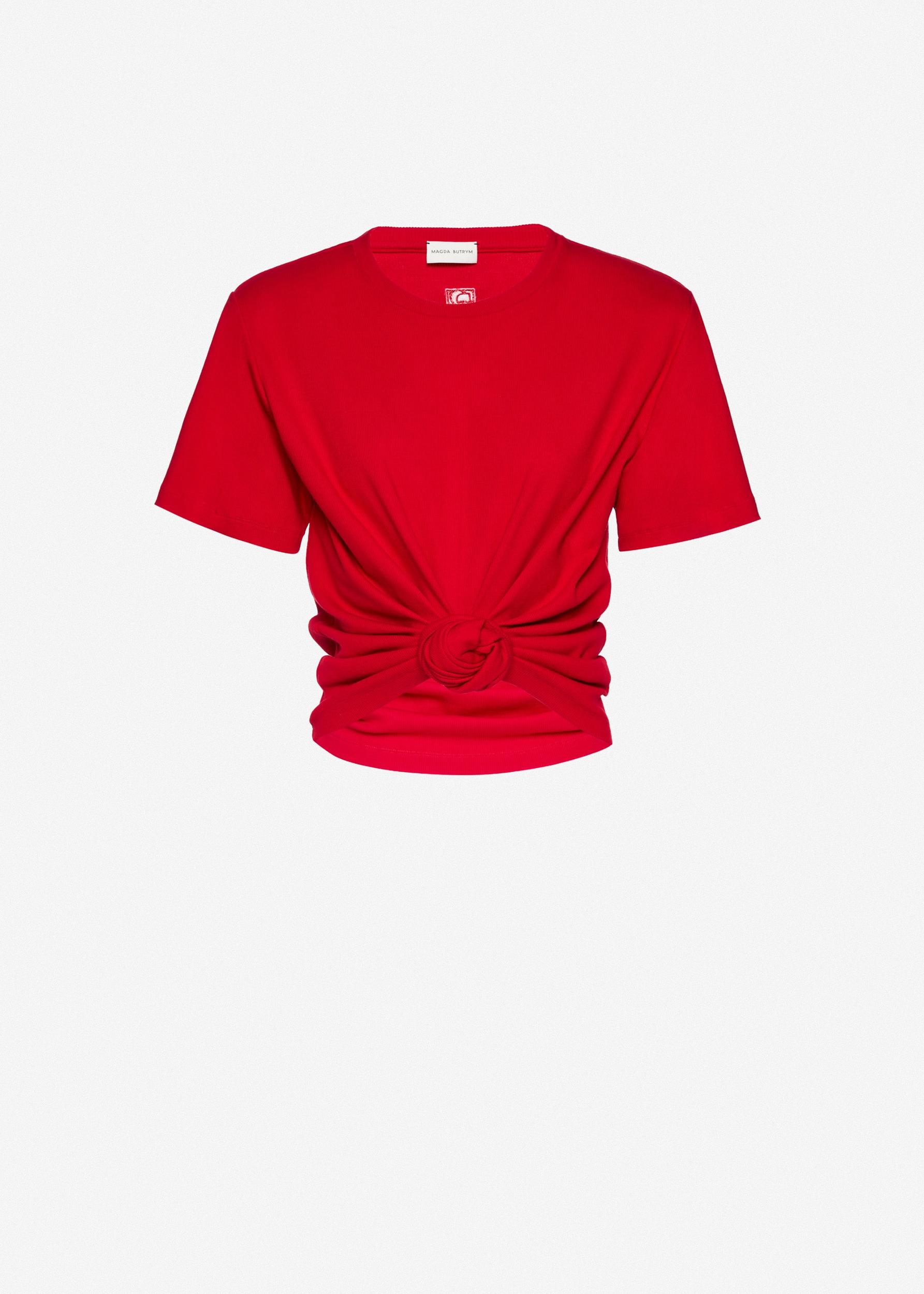 Knotted ribbed t-shirt in red