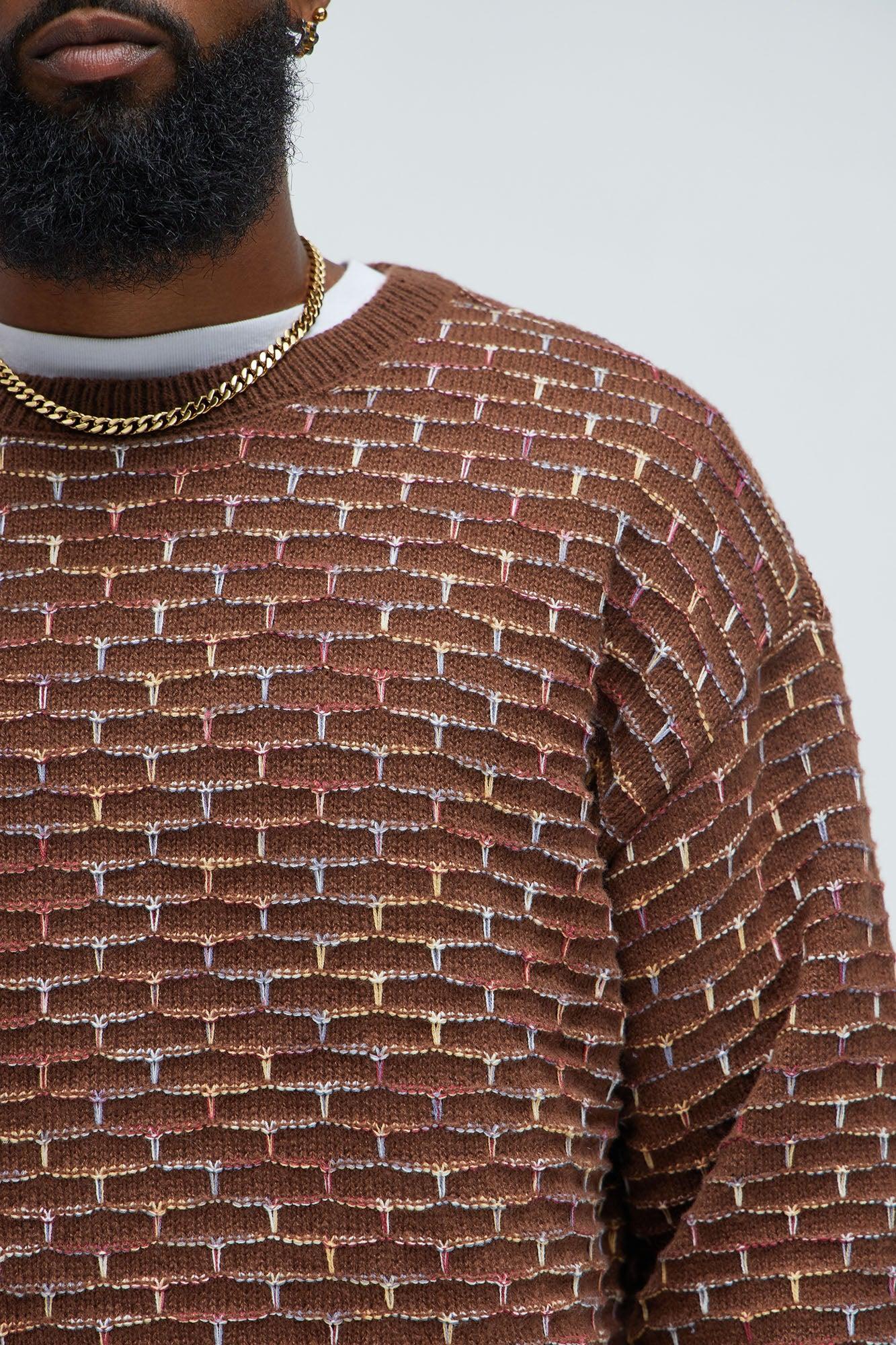 Available In Brown Combo. Crew Neck Long Sleeve 90% Polyester 10% Acrylic Disclaimer: Pattern Placement May Vary. Imported