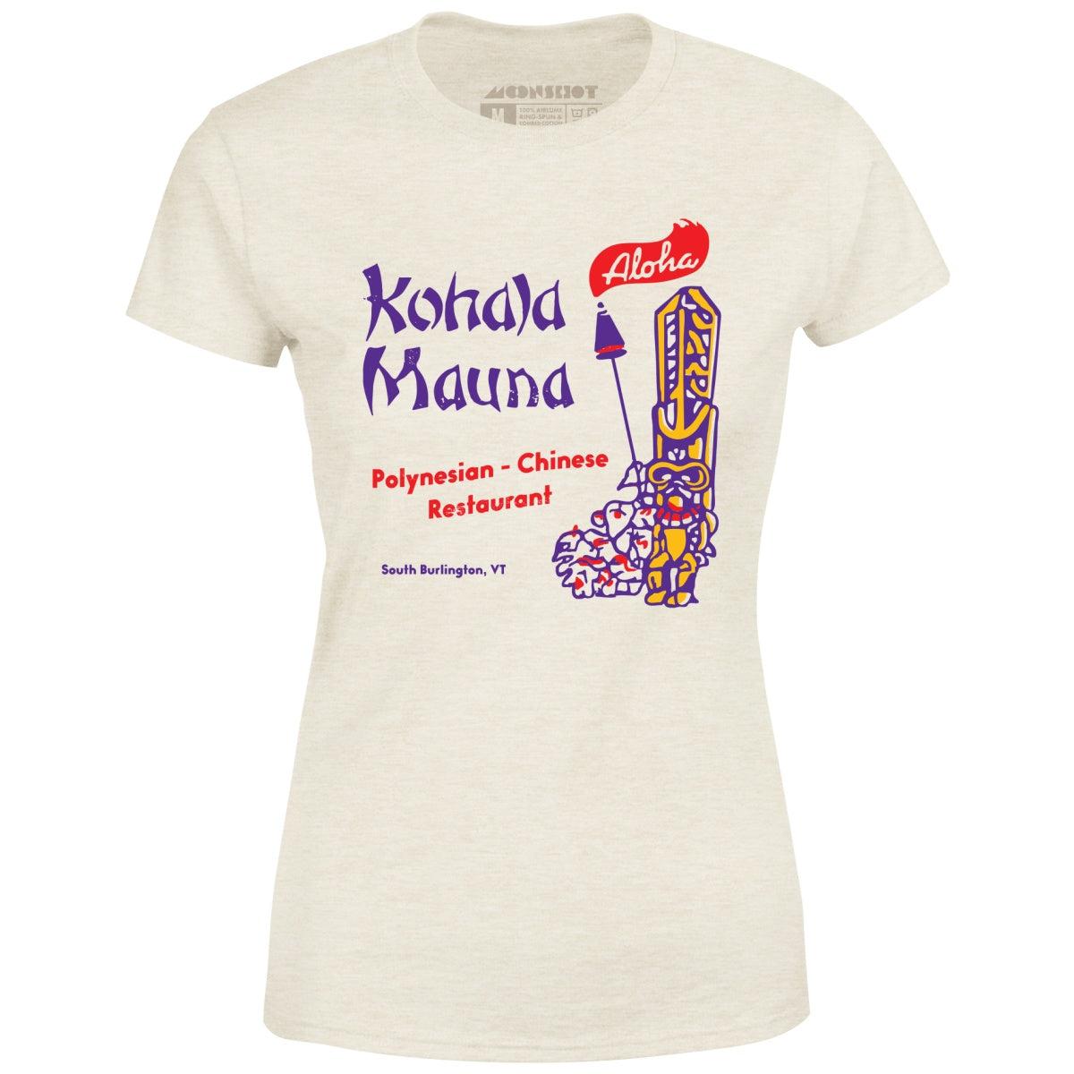 Opened in the early 1970s, Kohala Mauna was a rare New England outpost of tiki culture, located in South Burlington, Vermont. With flaming drinks, carved decor, and island vibes far from the tropics, it gave locals a taste of Polynesia until it closed by the late 1980s. This design is inspired by vintage defunct tiki and Polynesian inspired establishments of yesteryear. Printed on our super soft 100% ringspun & combed cotton women's T-Shirt. Or upgrade to our Luxury 52/48 cotton/poly vintage heather edition for an even softer classic look. We print & ship all of our high quality graphic tees in the USA.