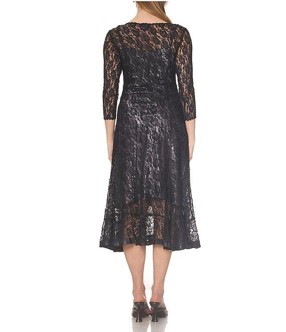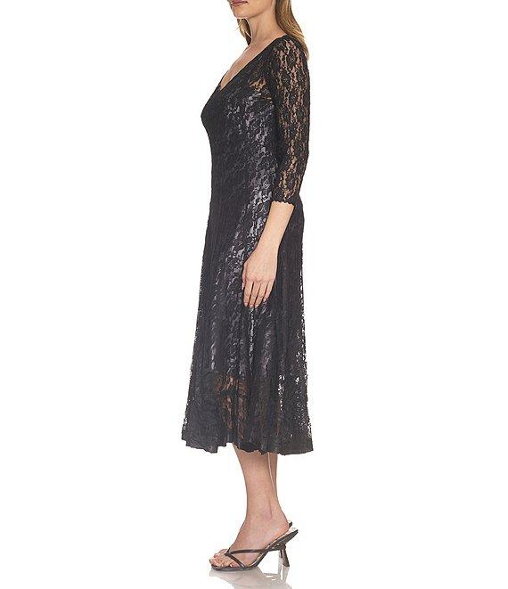Komarov Charmeuse Lace V-Neck 3/4 Sleeve Midi Dress