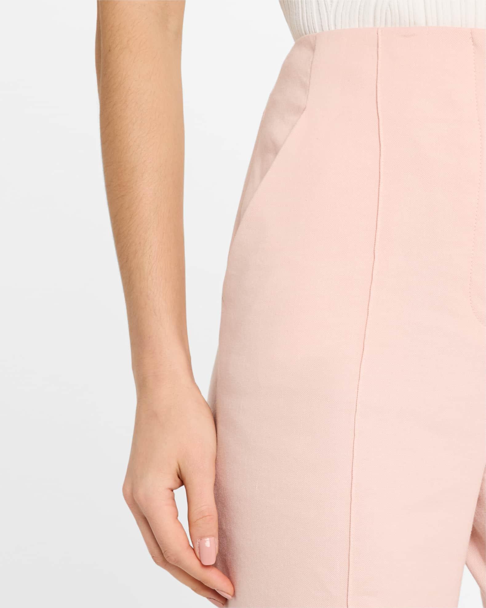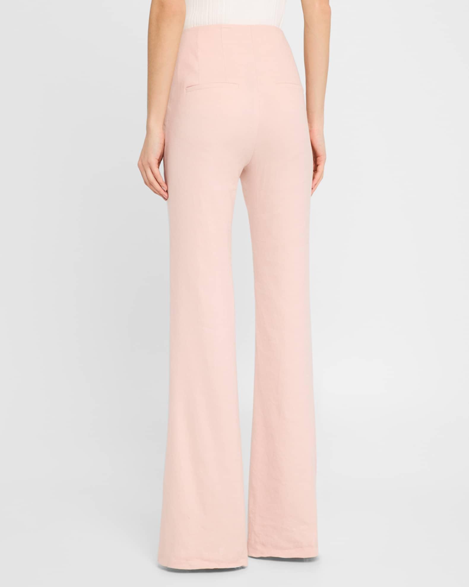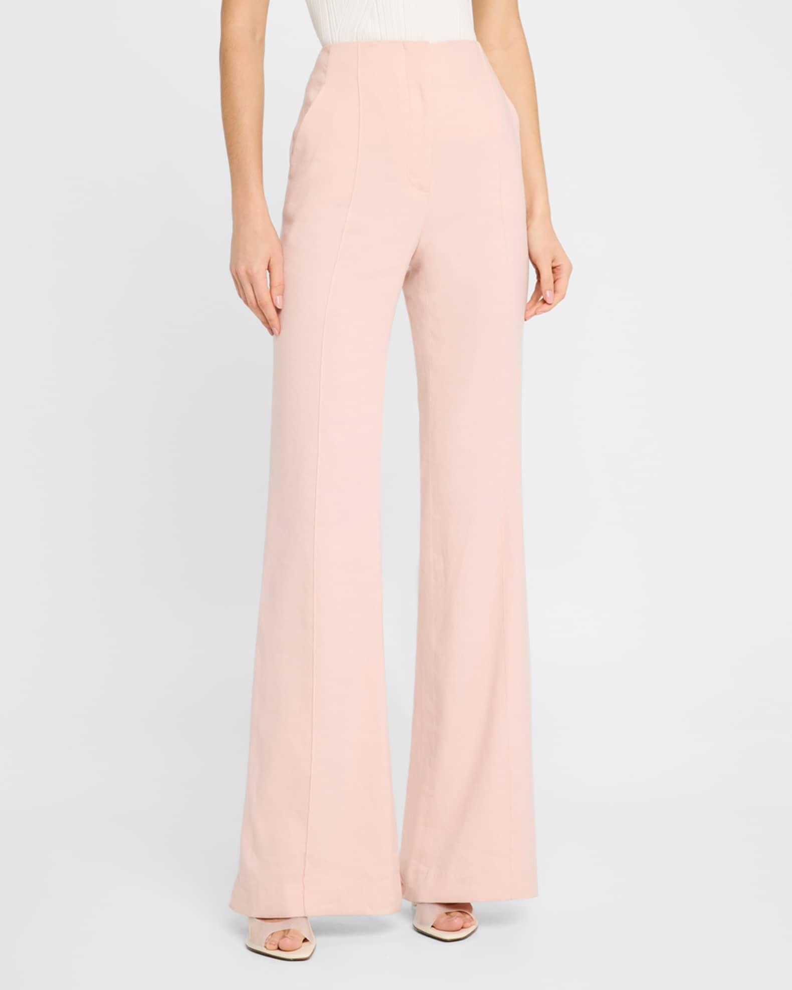 Veronica Beard "Komi" solid linen pants High rise Pintuck front Four-pocket style Straight legs with a subtle flare Full length Hook/zip fly Linen Dry clean Imported