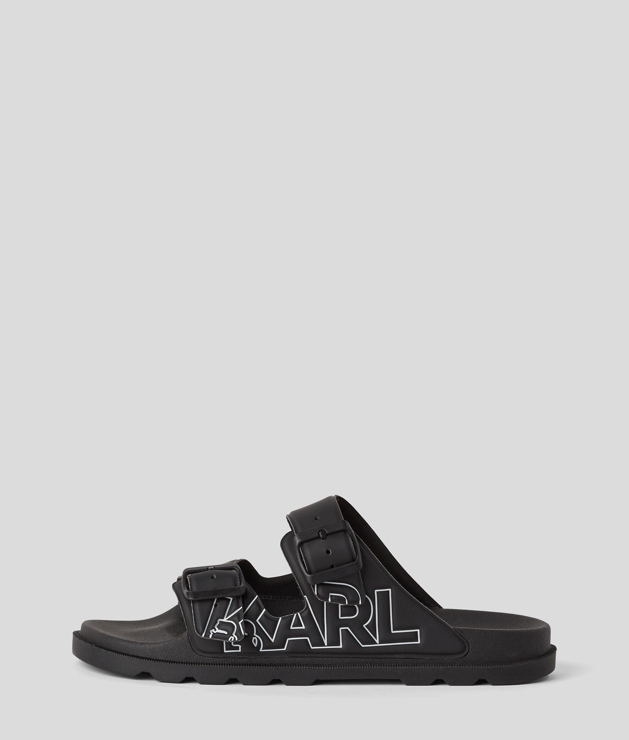 An embodiment of sleek sophistication, these KARL LAGERFELD sandals feature a molded upper that carries the illustrious KARL logo embossed with finesse. The effortless slip-on style ensures ease, while the lug outsole promises steadfast traction.