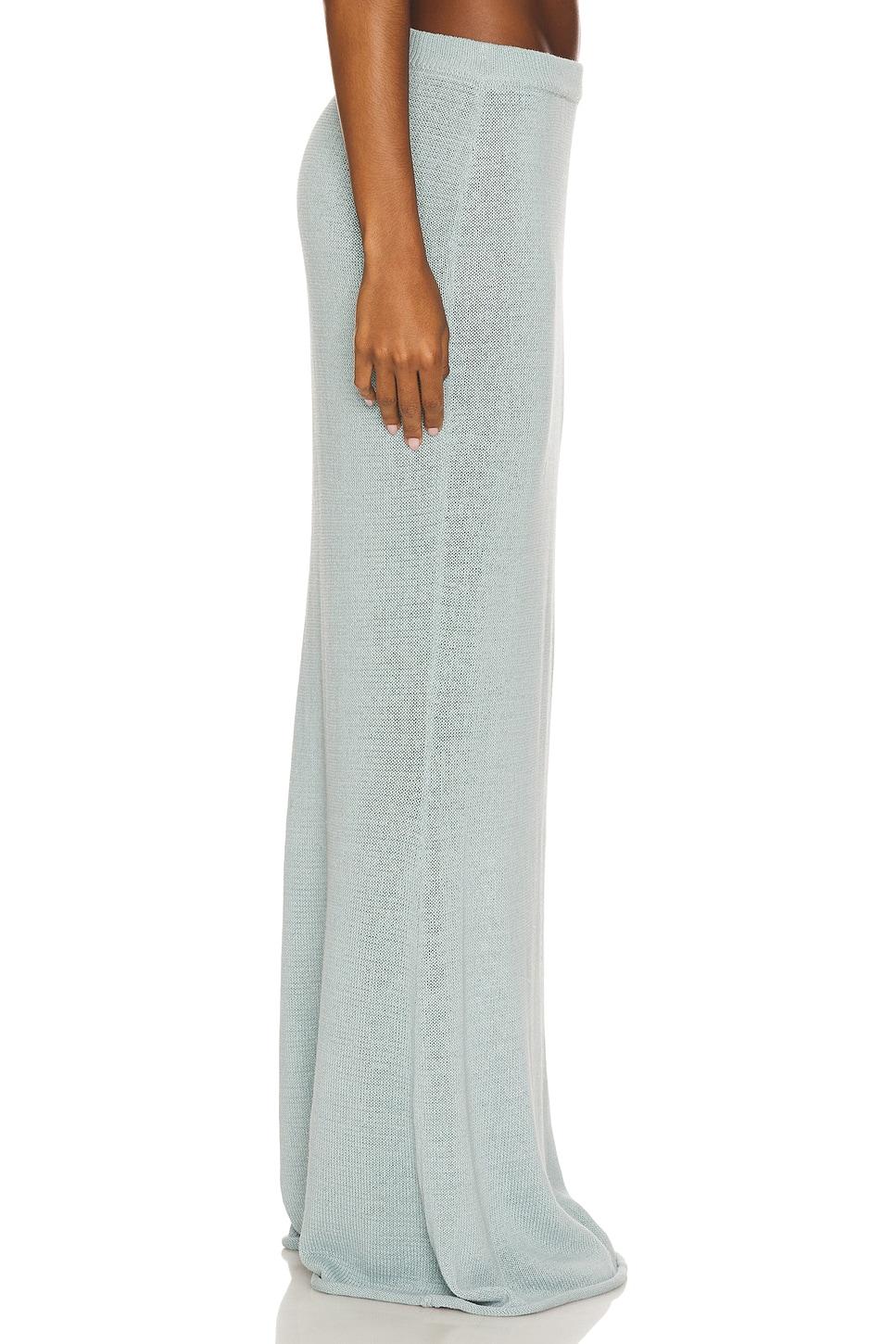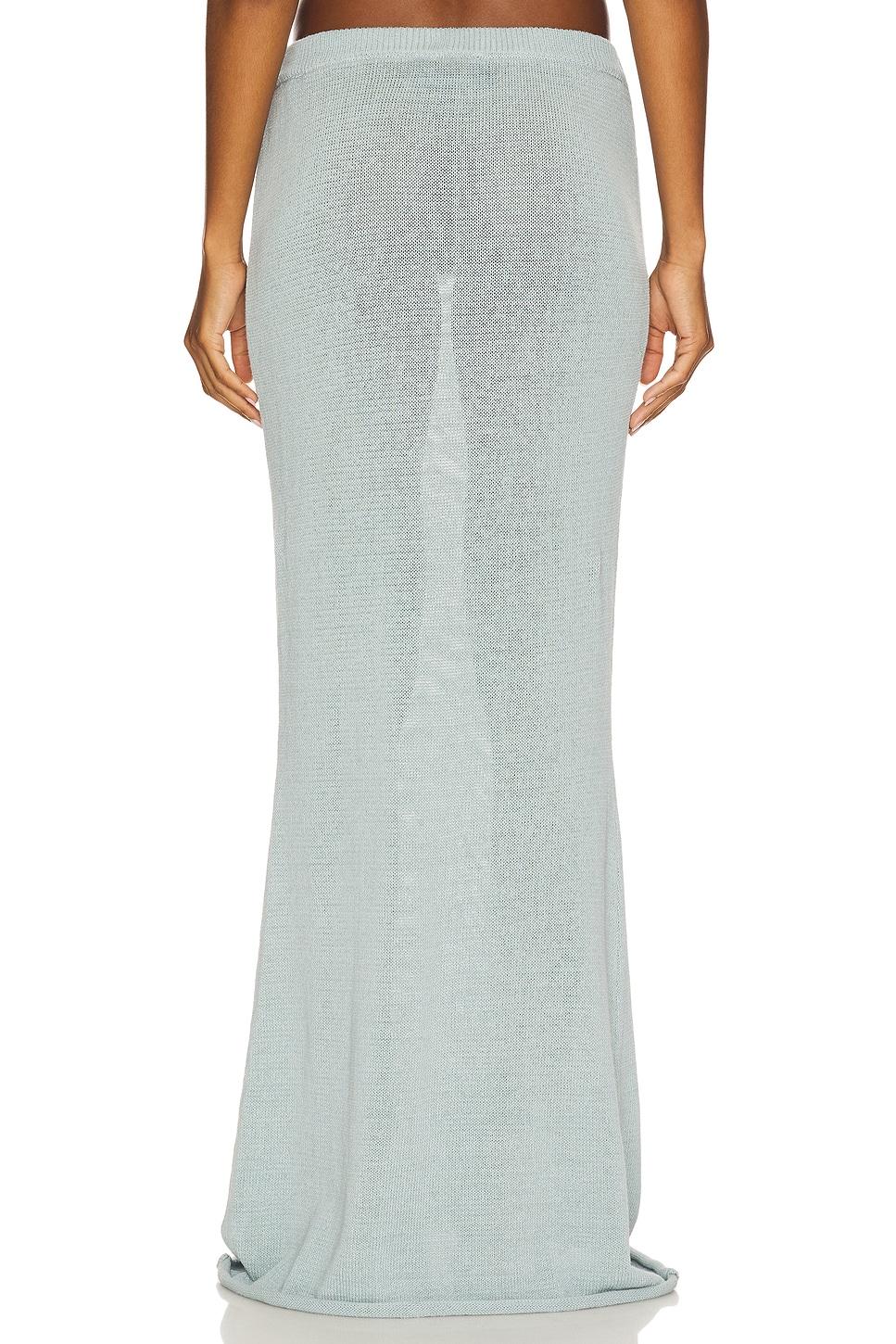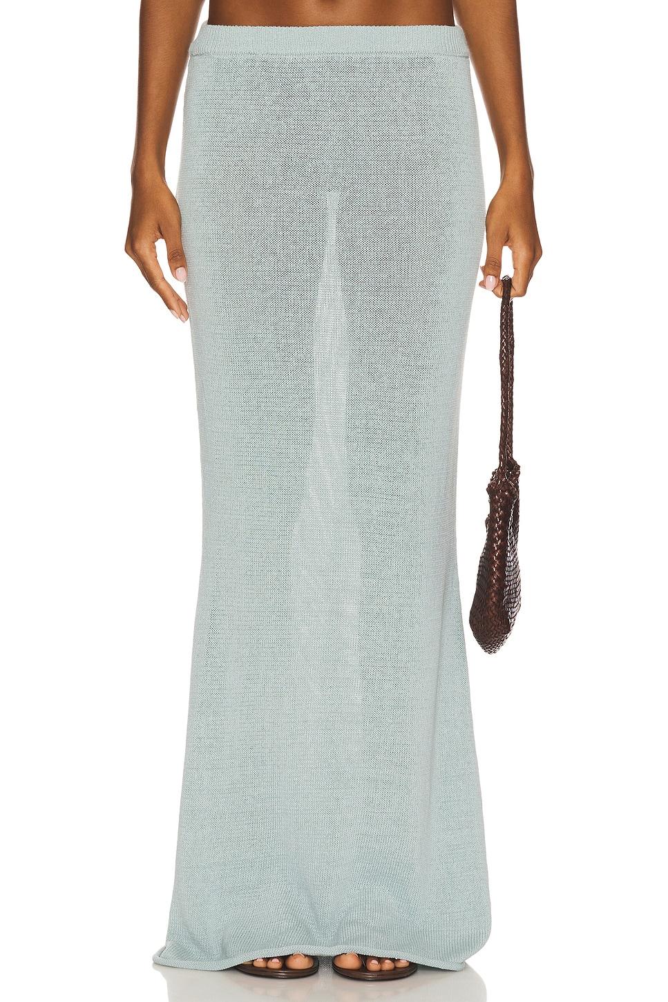 37% linen, 30% cotton, 28% nylon, 5% spandex. Machine wash. Unlined. Elasticized waistband. Lightweight knit fabric. Garment is made with a semi-sheer fabric, undergarments can show through. Item not sold as a set. Skirt measures approx 45" in length. Made in China. Revolve Style No. SERR-WQ113. Manufacturer Style No. S-SS25-3839-16.