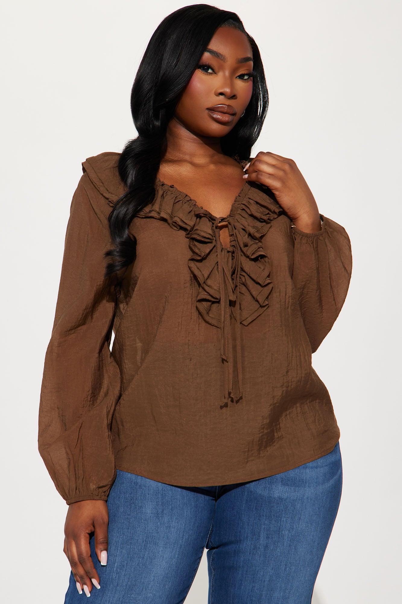 Koraline Ruffle Top - Brown