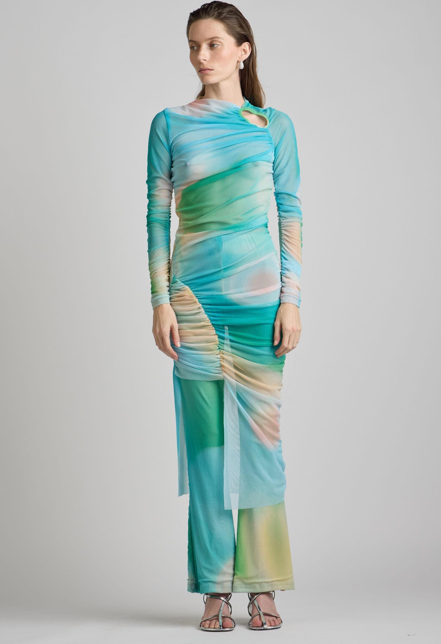 Sizes XS, S, M, LColor: KorokMidi LengthAsymmetrical cutGathered Silhouette100% PolyesterBy Martin AcrossTrousers sold separately Model is 163cm / 5'3 wearing size M