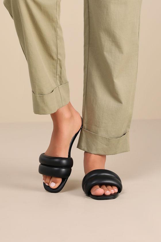 From running errands to poolside hangs, there's no better pick than the D'Amelio Footwear Kovella Black Faux Leather Flat Slide Sandals! Smooth faux leather shapes these trendy sandals with a square toe footbed and a wide vamp strap with a puffy, quilted-like effect. The easy slide-on design makes for effortless styling on the go!