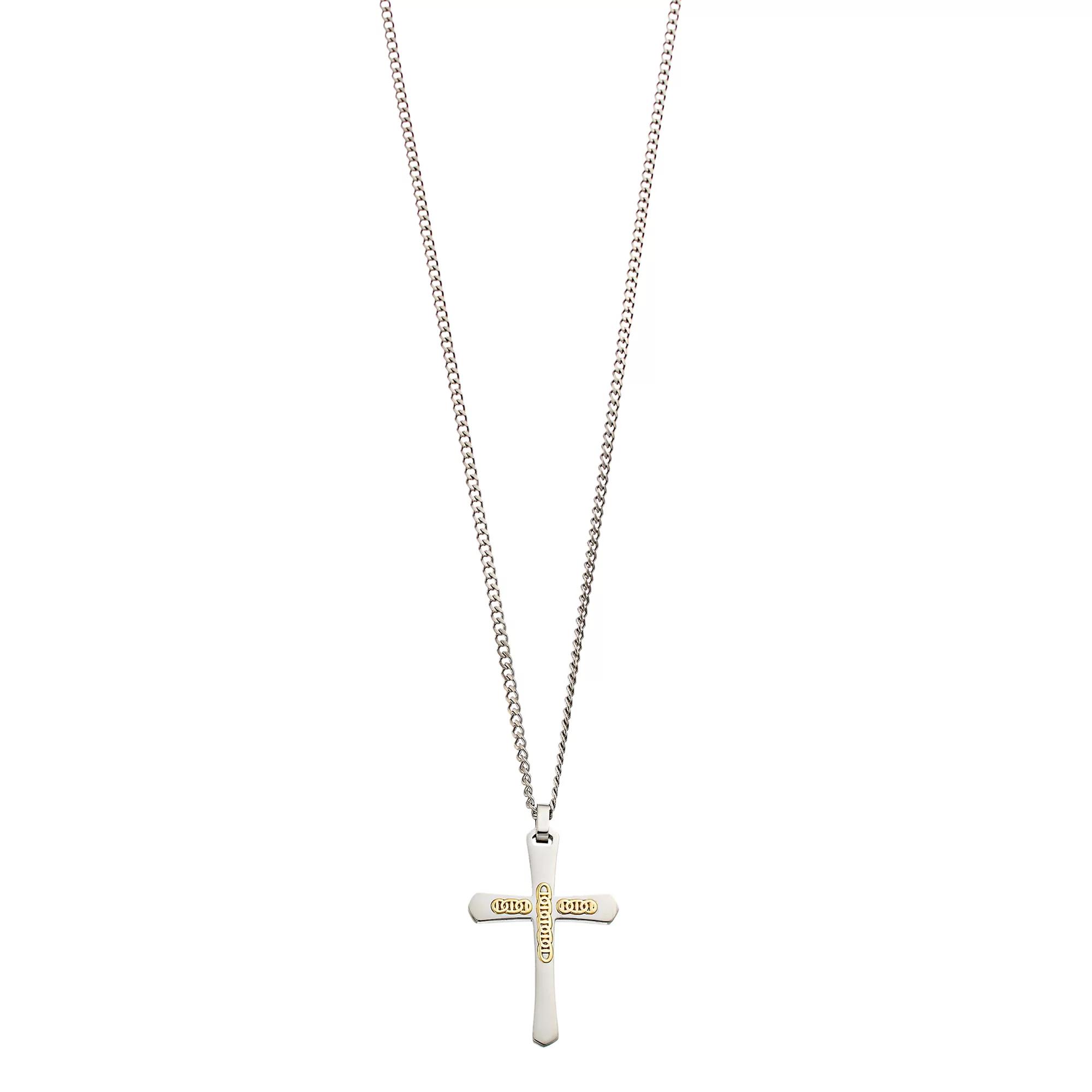 Keep what's most important to you close with this Kristen Kesho 14k Gold Bars on Stainless Steel Cross Pendant Necklace. Keep what's most important to you close with this Kristen Kesho 14k Gold Bars on Stainless Steel Cross Pendant Necklace. Metal: 14k gold, stainless steel Necklace length: 24 in. Packaging: pouch Finish: polished Pendant size: 1.75 x 1.25 in. Chain type: curb Please note, due to the high value of this item, a signature may be required upon delivery. Size: 24". Color: Silver. Gender: male. Age Group: adult.