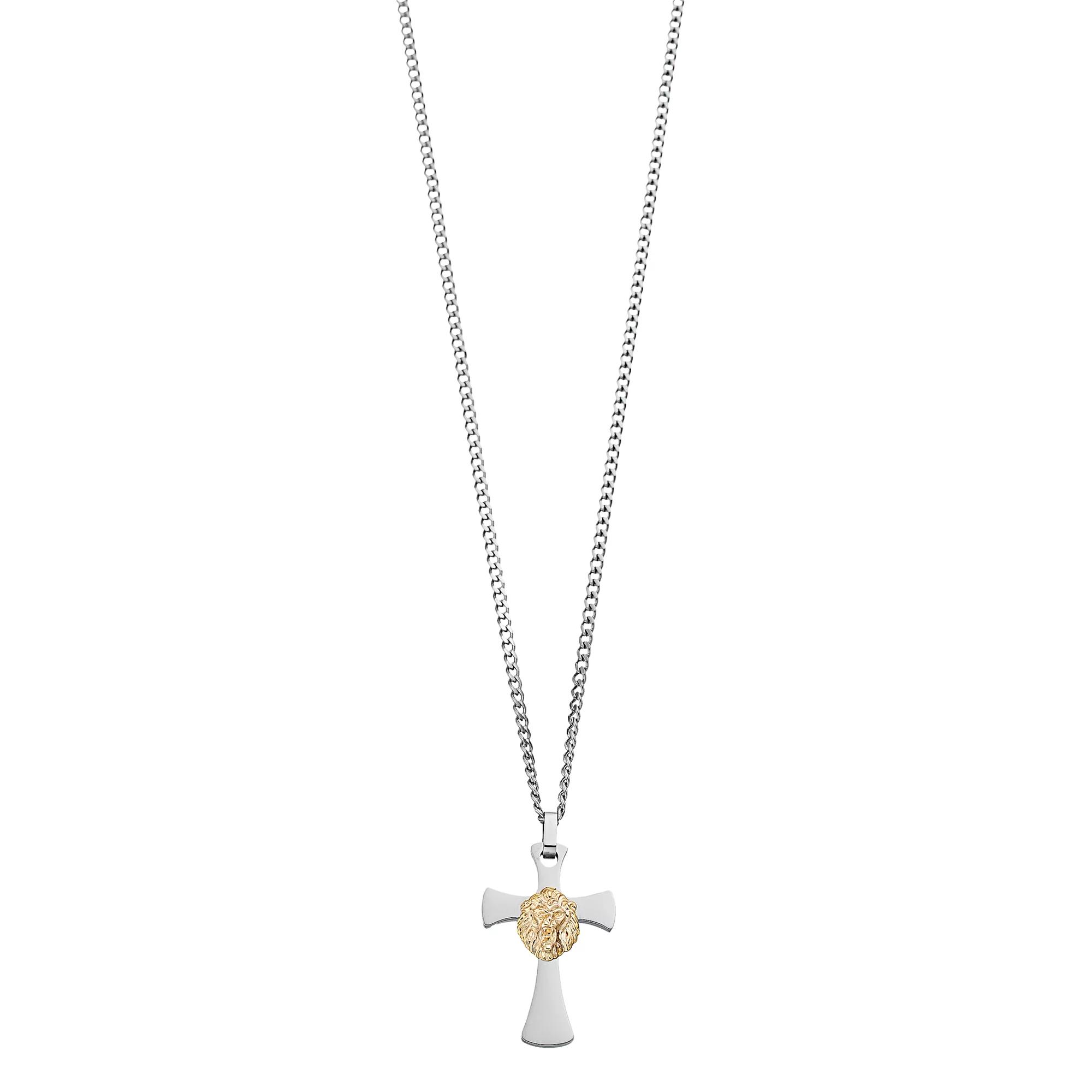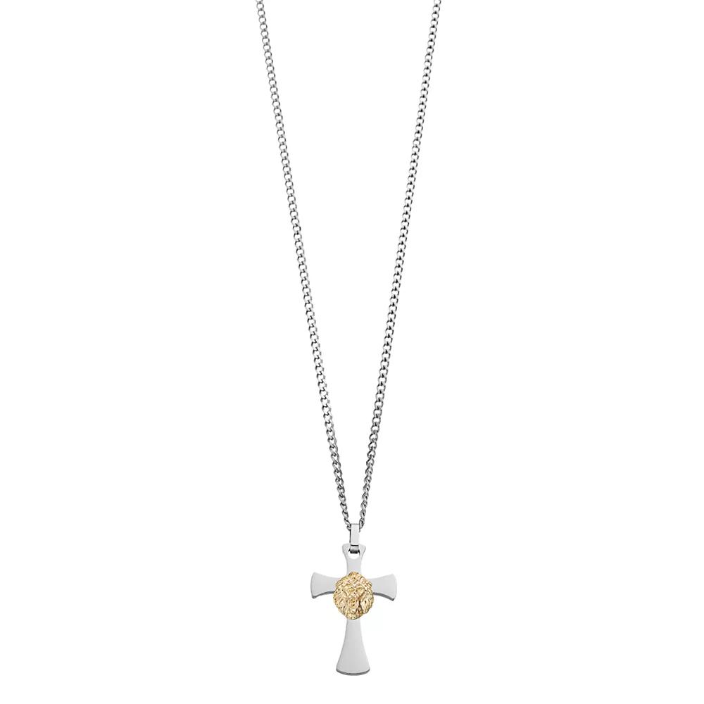 Add this stunning Kristen Kesho 14k Gold Lion on Stainless Steel Cross Pendant Necklace to your jewelry collection. Add this stunning Kristen Kesho 14k Gold Lion on Stainless Steel Cross Pendant Necklace to your jewelry collection. Metal: 14k gold, stainless steel Necklace length: 24 in. Packaging: pouch Finish: polished Pendant size: 1.5 x 1 in. Chain type: curb Please note, due to the high value of this item, a signature may be required upon delivery. Size: 24". Color: Silver. Gender: male. Age Group: adult.