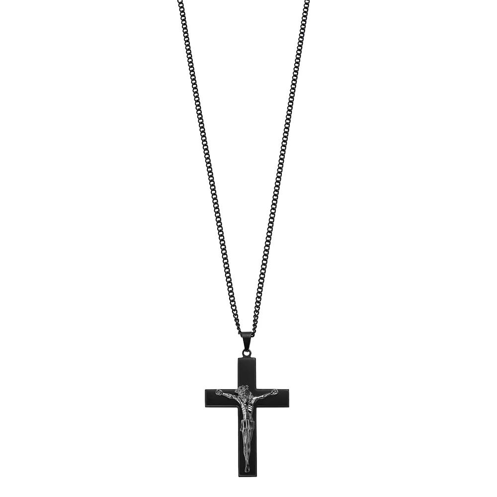 Add the finishing touches to any outfit with this Kristen Kesho Stainless Steel Black Plated Crucifix Curb Chain Pendant Necklace. Click on this JEWELRY & WATCHES GUIDE to learn about fit, styles, materials and more! Add the finishing touches to any outfit with this Kristen Kesho Stainless Steel Black Plated Crucifix Curb Chain Pendant Necklace. Click on this JEWELRY & WATCHES GUIDE to learn about fit, styles, materials and more! FEATURES Pendant dimensions: 1.60 in. x 2.25 in. Chain length: 24 in. Chain type: curb Clasp: lobster-claw Nickel free Metal: stainless steel Plating: ion plated Finish: polished Packaging: boxed Size: 24. Gender: male. Age Group: adult.