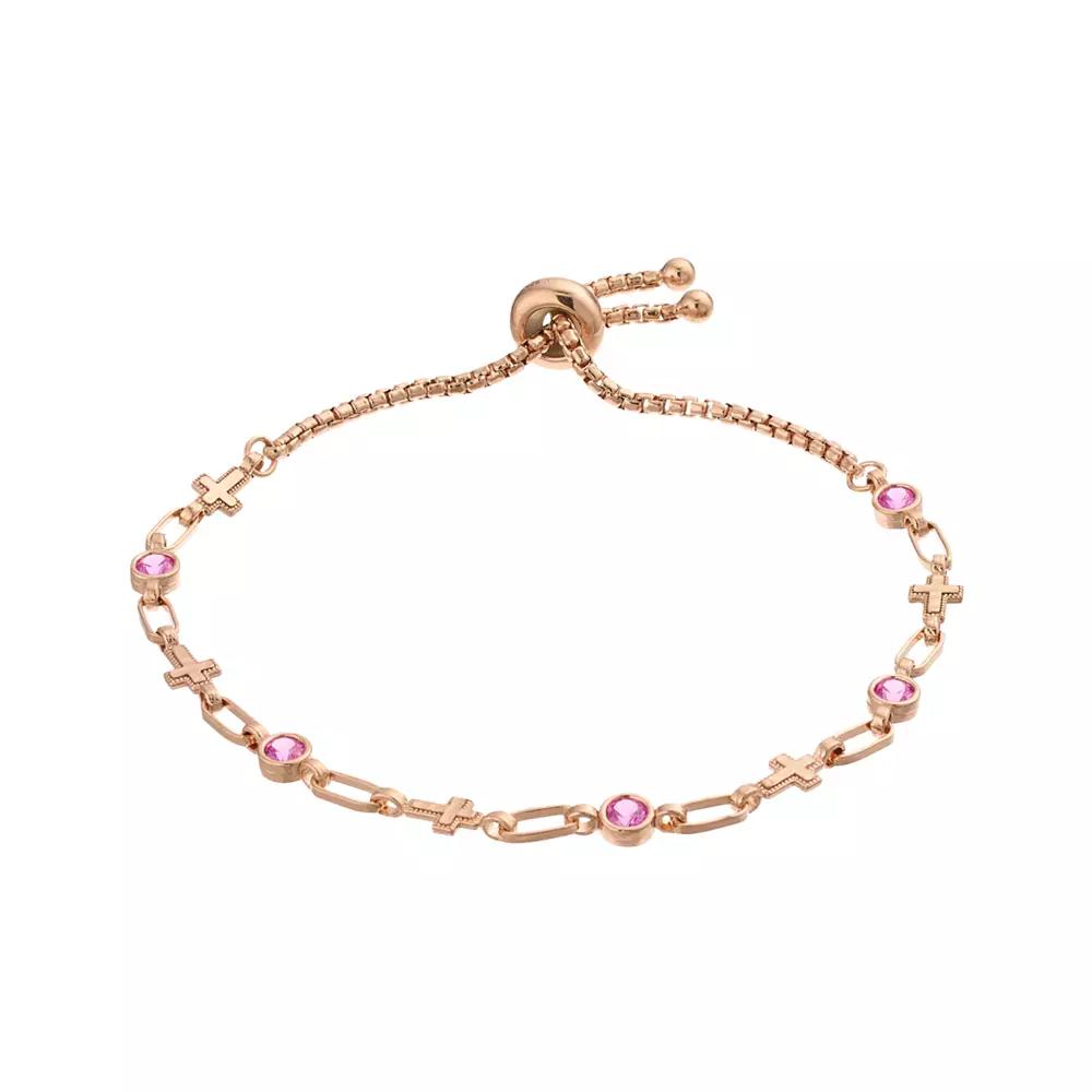 Alternating lab-created pink sapphires and cross links combine to make this Kristen Kesho bolo bracelet an eye-catching complement to your wardrobe. Alternating lab-created pink sapphires and cross links combine to make this Kristen Kesho bolo bracelet an eye-catching complement to your wardrobe. Length: adjusts up to 9.5 in. Nickel free Metal: sterling silver Finish: diamond-cut Packaging: boxedSTONE DETAILS Stone type: lab-created pink sapphire Total weight: 5/8 ct. Stone size: 3 mm Shape: round Setting: bezel Gemstones may have been treated to enhance their appearance. Special care may be required. Please visit our Gemstone Treatment & Special Care Guide for more information. Size: 9.50. Color: Grey. Gender: female. Age Group: adult.