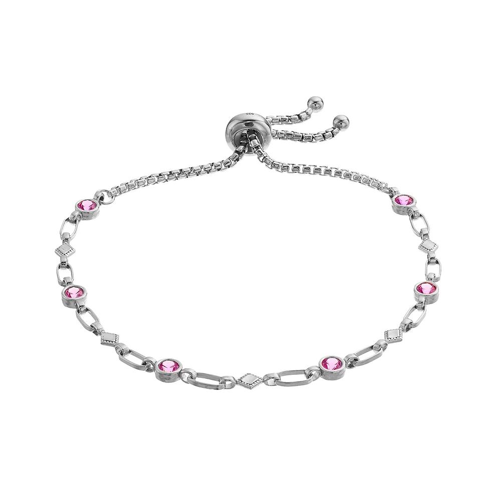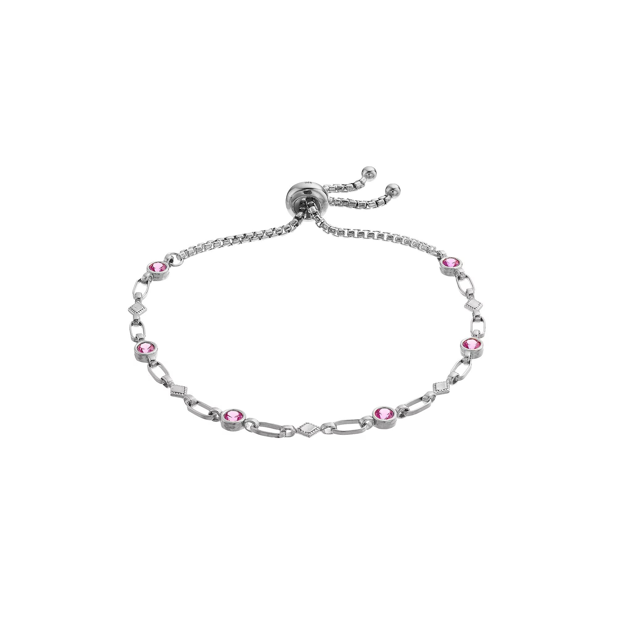 Alternating lab-created pink sapphires and kite links combine to make this Kristen Kesho bolo bracelet a stylish complement to your wardrobe. Alternating lab-created pink sapphires and kite links combine to make this Kristen Kesho bolo bracelet a stylish complement to your wardrobe. Length: adjusts up to 9.5 in. Nickel free Metal: sterling silver Finish: diamond-cut Packaging: boxedSTONE DETAILS Stone type: lab-created pink sapphire Total weight: 5/8 ct. Stone size: 3 mm Shape: round Setting: bezel Gemstones may have been treated to enhance their appearance. Special care may be required. Please visit our Gemstone Treatment & Special Care Guide for more information. Size: 9.50. Color: Grey. Gender: female. Age Group: adult.