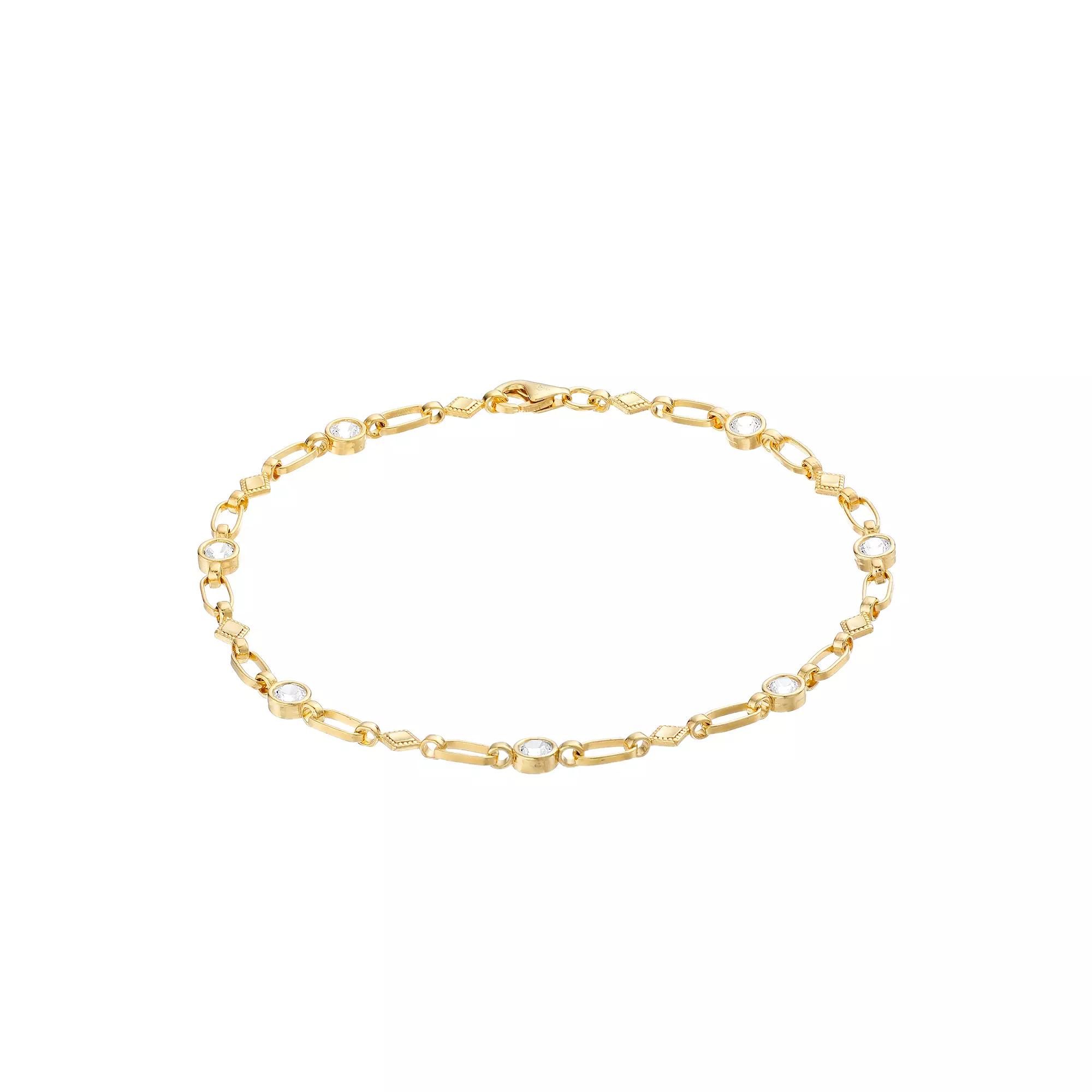Designed with sparkling lab-created white sapphires and eye-catching textured kite links, this Kristen Kesho bracelet is the perfect way to dress up your everyday wardrobe. Designed with sparkling lab-created white sapphires and eye-catching textured kite links, this Kristen Kesho bracelet is the perfect way to dress up your everyday wardrobe. Length: 7.5 in. Clasp: lobster claw Metal: sterling silver Finish: diamond-cut, polished Packaging: boxedSTONE DETAILS Stone type: lab-created white sapphire Total weight: 1 3/8 ct. Shape: round Setting: bezel Gemstones may have been treated to enhance their appearance. Special care may be required. Please visit our Gemstone Treatment & Special Care Guide for more information. Size: 7.5". Color: Yellow. Gender: female. Age Group: adult.
