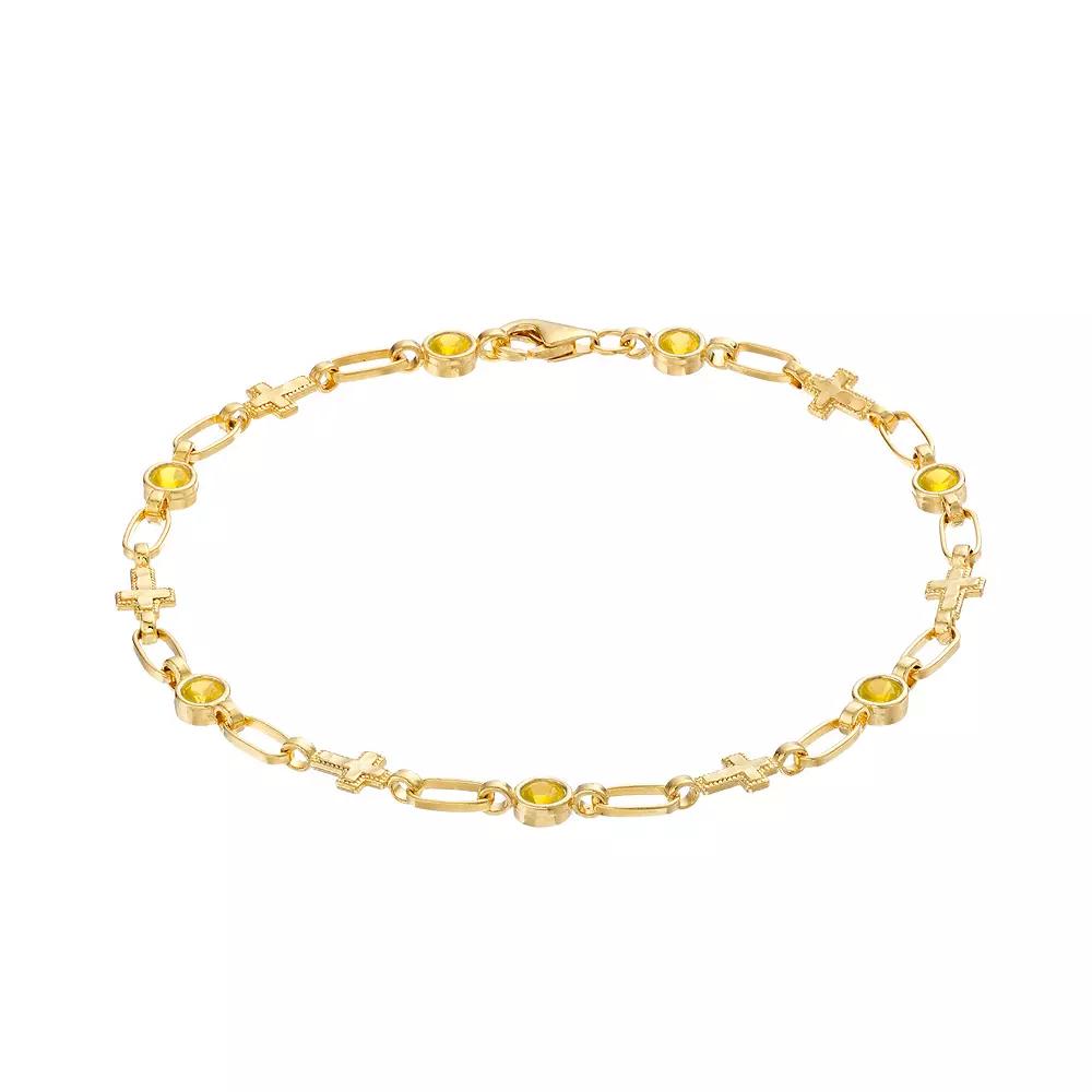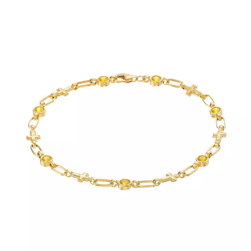 Kristen Kesho Sterling Silver Lab-Created Yellow Sapphire Cross Link Bracelet, Women's,