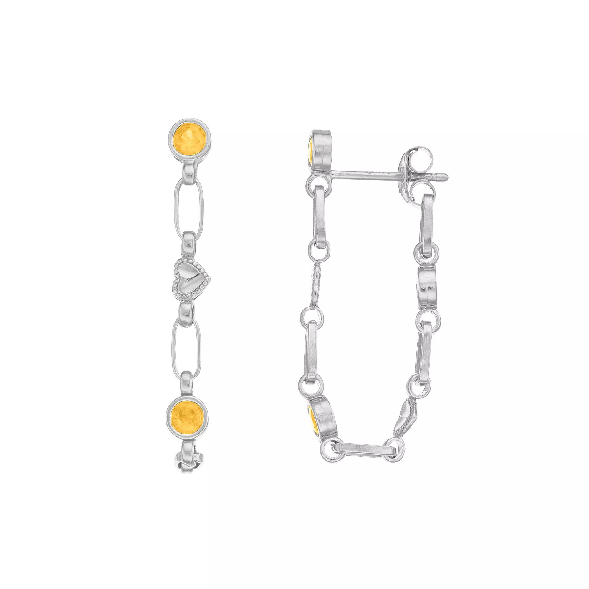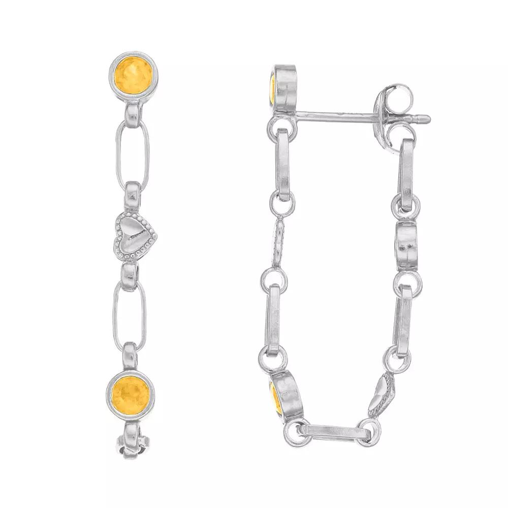These sterling silver Kristen Kesho front-to-back chain hoop earrings feature sweet heart-shaped links and cheerful lab-created yellow sapphires, a charming addition to any jewelry collection. These sterling silver Kristen Kesho front-to-back chain hoop earrings feature sweet heart-shaped links and cheerful lab-created yellow sapphires, a charming addition to any jewelry collection. Length: 1.25 in. Backings: post Metal: sterling silver Finish: diamond-cut, polished Packaging: boxedGEMSTONE DETAILS Stone type: lab-created yellow sapphire Total weight: 7/8 ct. Shape: round Setting: bezelGemstones may have been treated to enhance their appearance. Special care may be required. Please visit our Gemstone Treatment & Special Care Guide for more information. Size: One Size. Color: Grey. Gender: female. Age Group: adult.