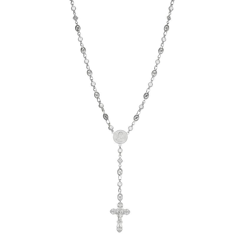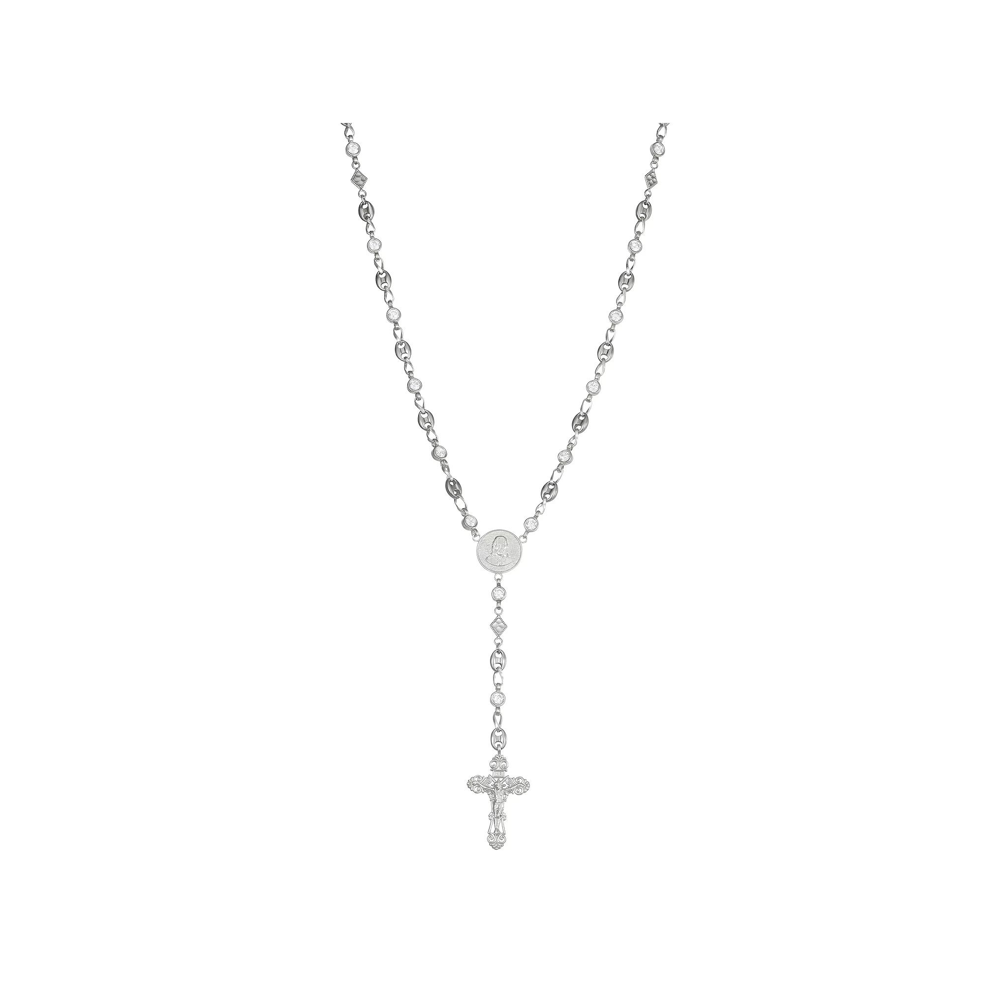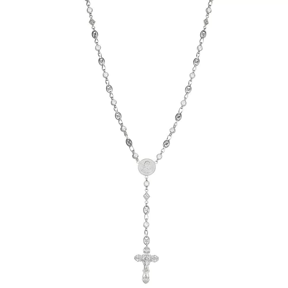 Accent your look with this Kristen Kesho sterling silver & stainless steel cubic zirconia rosary necklace. Click on this JEWELRY & WATCHES GUIDE to learn about fit, styles, materials and more! Accent your look with this Kristen Kesho sterling silver & stainless steel cubic zirconia rosary necklace. Click on this JEWELRY & WATCHES GUIDE to learn about fit, styles, materials and more! FEATURES Chain length: 22 in. Clasp: lobster-claw Nickel free Metal: sterling silver, stainless steel Plating: rhodium Finish: polished Packaging: boxedSTONE DETAILS Stone type: cubic zirconia Total weight: 2 7/8 ct. Shape: round brilliant Setting: bezel Gemstones may have been treated to enhance their appearance. Special care may be required. Please visit our Gemstone Treatment & Special Care Guide for more information. Size: 20". Color: White. Gender: female. Age Group: adult.