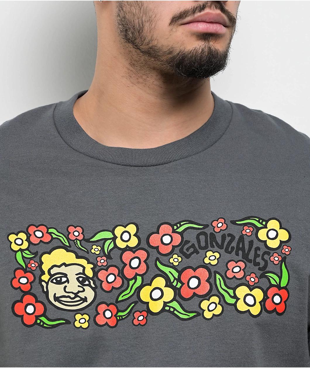 Krooked welcomes the Sweatpants t-shirt in a charcoal colorway with artwork from Mark Gonzales on the front. The imagery on the tee displays vibrant flowers alongside the brand founder's last name and a cartoon-themed face for an artistic touch. This