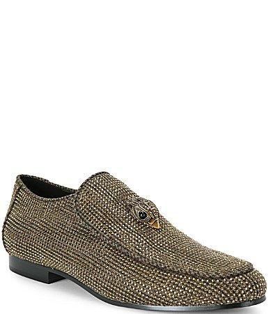 From Kurt Geiger London, the Mens Hugh Herringbone Slip-On Loafers feature:herringbone fabric upperembellished with gold crystalsantiqued brass eagle head features crystals on the vampSynthetic liningSynthetic outsoleImported.