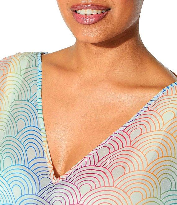 Kurt Geiger London Southbank Rainbow Chiffon V-Neck Tunic Swim Cover-Up