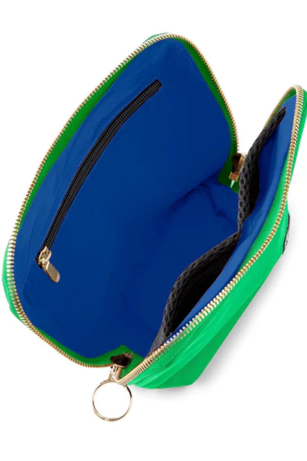 -Interior zip and double mesh pockets for sponges and accessories