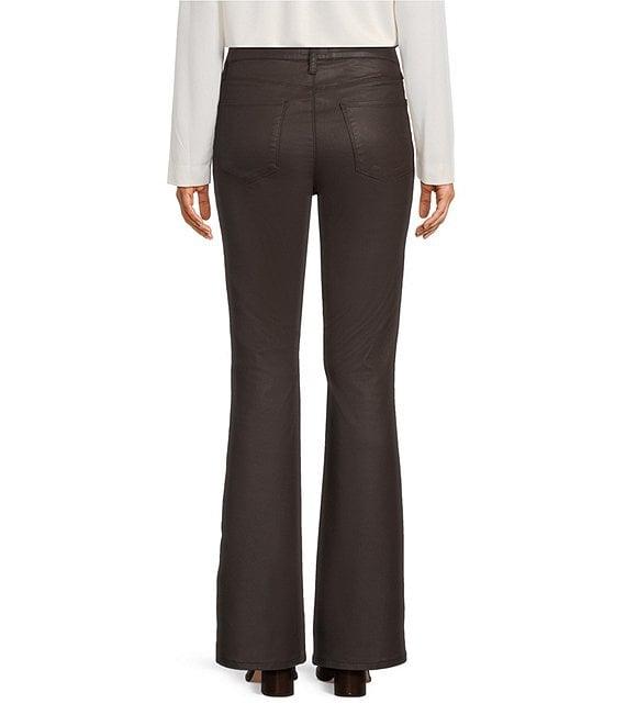 KUT from the Kloth, these jeans feature: Coated denim fabrication Flare leg silhouette Fab Ab technology High rise Belt loops 5-pocket styling Front button and zipper closure Approx. 33" inseam; 21" leg opening; 10.25" front rise Modal/polyester/lycra Machine wash Imported.