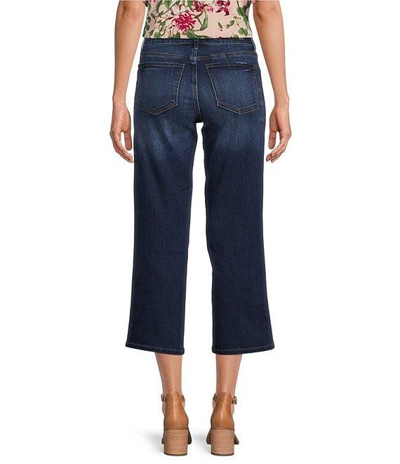 From KUT from the Kloth, these jeans feature: Stretch denim fabrication Wide leg High rise waist with belt loops 5-pocket style Straight hemline Zip fly & button closure Approx. 27" inseam; 10" front rise; 14" back rise; 19" leg opening Cotton/repreve polyester/rayon/spandex Machine wash cold Imported. Our Fab Ab fit technique is designed with front pocket technology that is flattening, slenderizing, and provides comfort. The jeans are slimming and fabulously figure-flat.