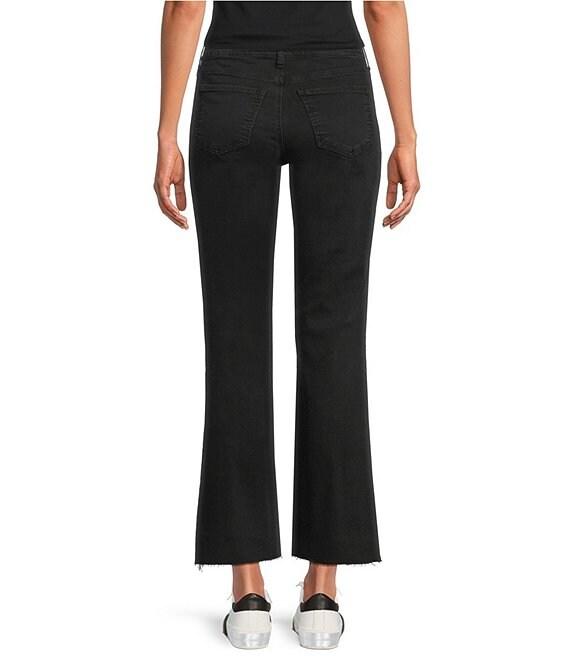 From KUT from the Kloth, these jeans feature: Stretch denim fabrication Wide leg silhouette High rise Belt loops 5 pocket styling Raw hemline Ankle length Front button and zipper closure Approx. 27" inseam, 18" leg opening, 10.25" rise Cotton/lyocell/polyester/elastane Machine wash Imported.