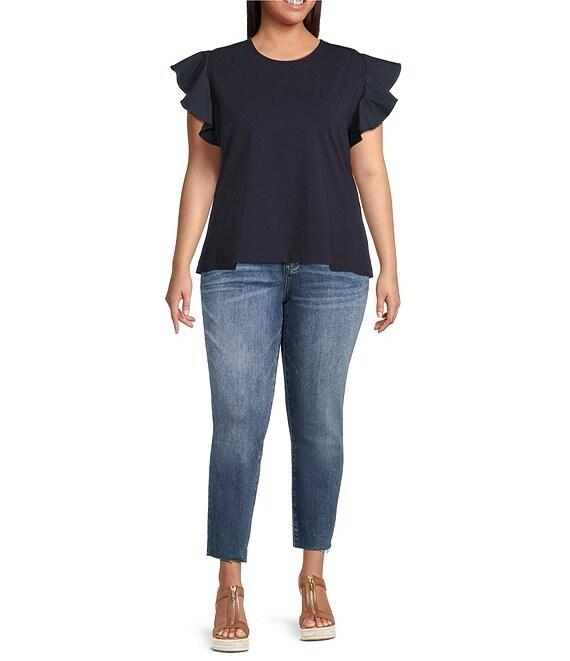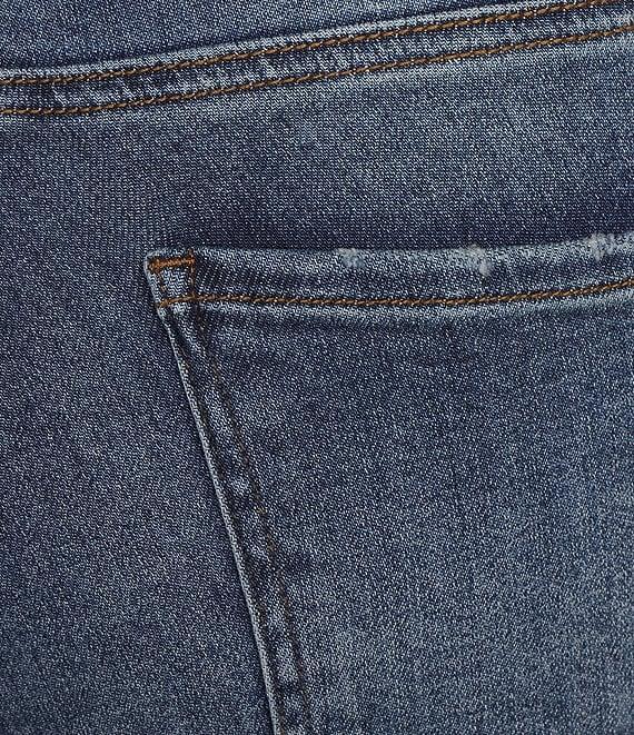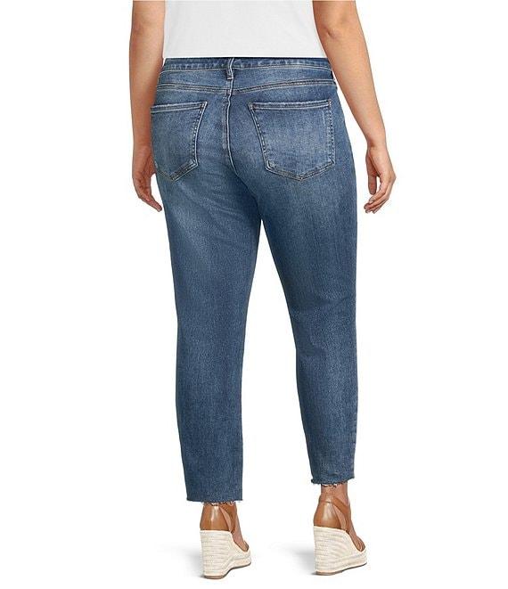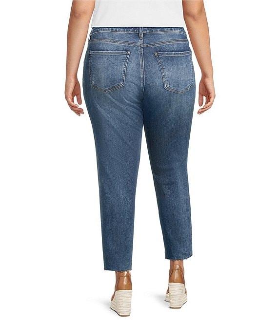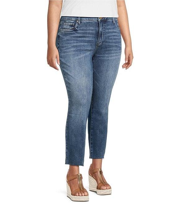 From KUT from the Kloth Plus, these jeans feature: Stretch denim fabrication Tapered slim leg silhouette High-rise Belt loops 5 pocket style Ankle length Razor hem Front zipper and button closure Approx. 27" inseam, 15.5" leg opening Cotton/polyester/spandex Machine wash cold/tumble dry low Imported.