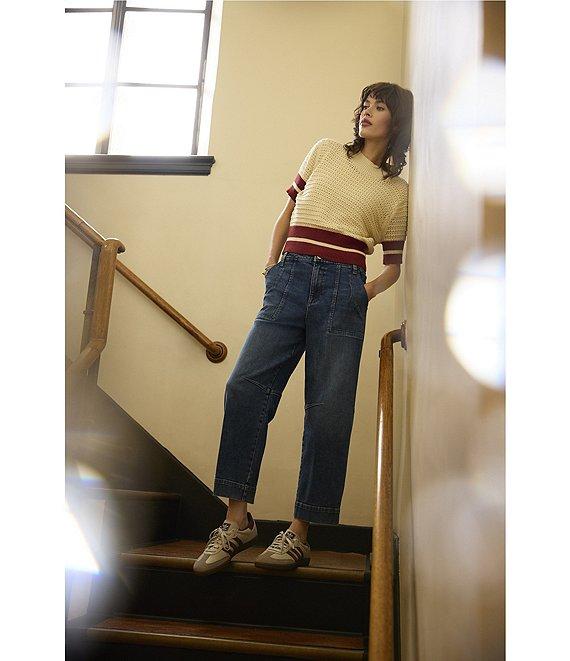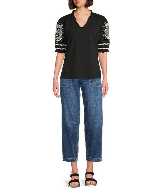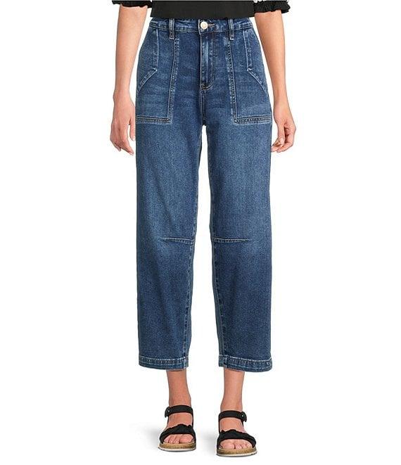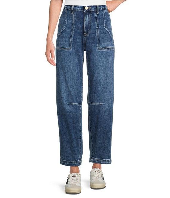 From KUT from the Kloth, these jeans feature: Stretch denim fabrication Loose barrel silhouette High rise Belt loops Front functional patch and back flap pockets Front zipper and button closure Approx. 26.5" inseam, 11.5" rise Cotton/polyester/rayon/spandex Machine wash cold/line dry Imported.