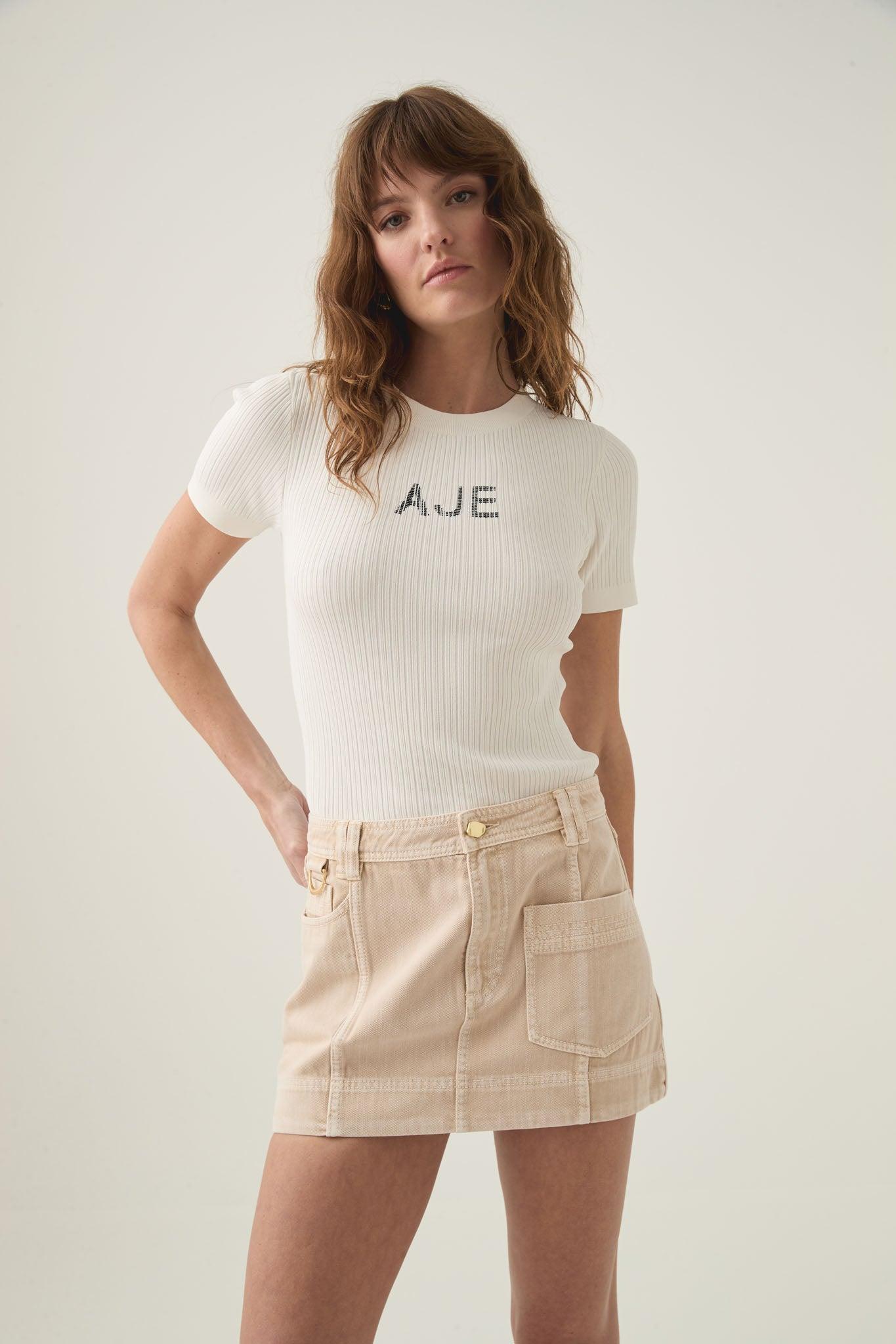PRODUCT DETAILS Denim mini skirt Front zip fly with feature button Twin belt loops Logo patch detail at waistband Front pocket with coin pocket Asymmetric front and back patch pocket 100% Cotton Designed to Fade Delicate Cold Hand Wash Shop All Skirts SIZE AND FIT Model wears a size AU 8/S Height: 175cm/ 5’9 Bust: 81cm Waist: 60cm Hips: 89cm