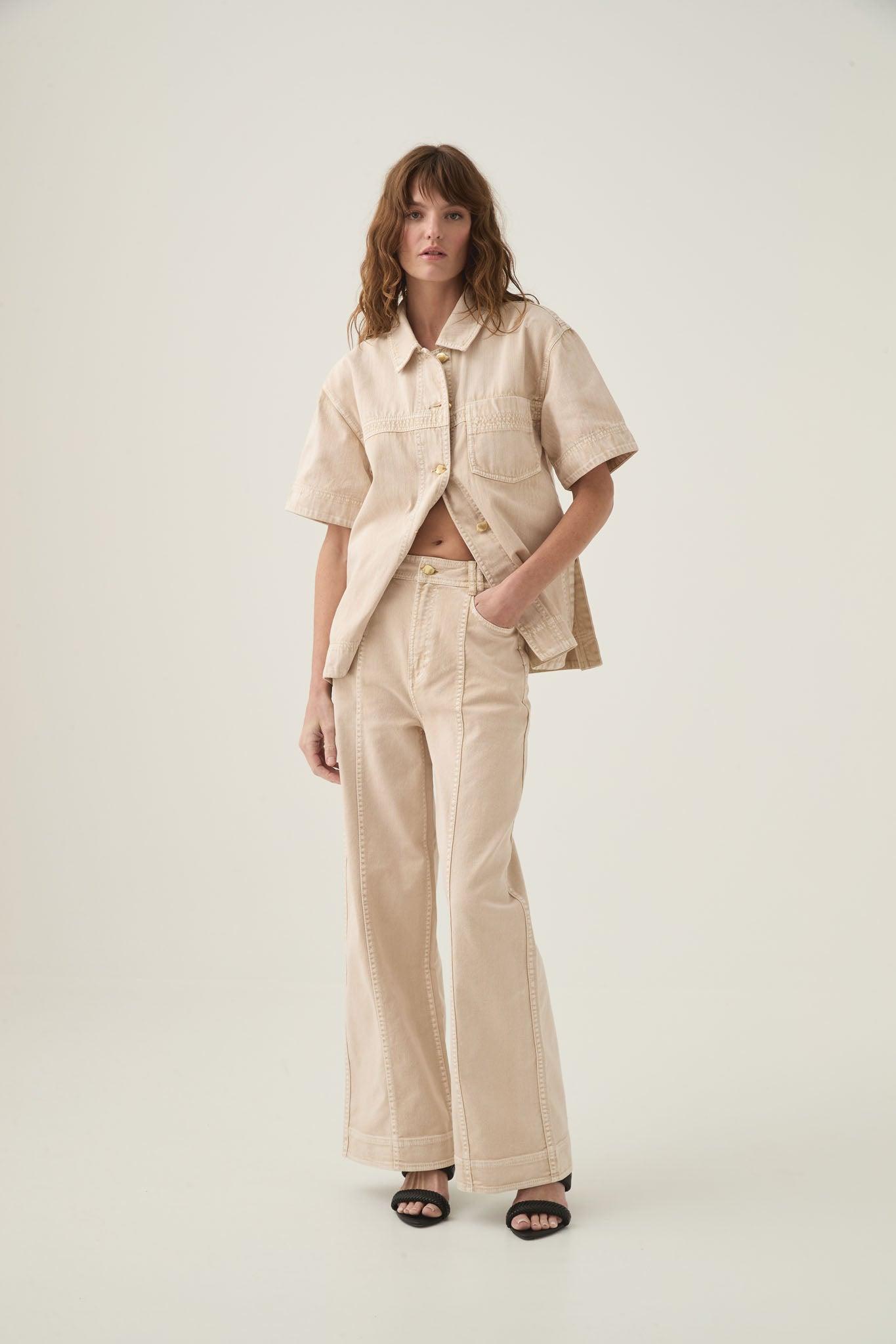 PRODUCT DETAILS Women's jeans Wide-leg Relaxed fit Front zip fly with feature button Twin belt loops Coin, front and back pockets Logo patch at back waist 100% Cotton Designed to Fade Delicate Cold Hand Wash Shop All Pants SIZE AND FIT Model wears a size AU 8/S Height: 175cm/ 5’9 Bust: 81cm Waist: 60cm Hips: 89cm