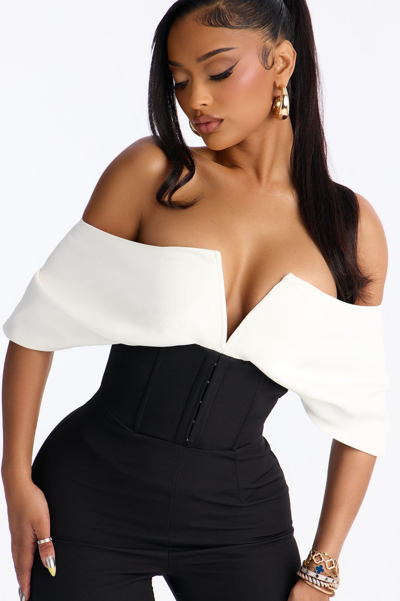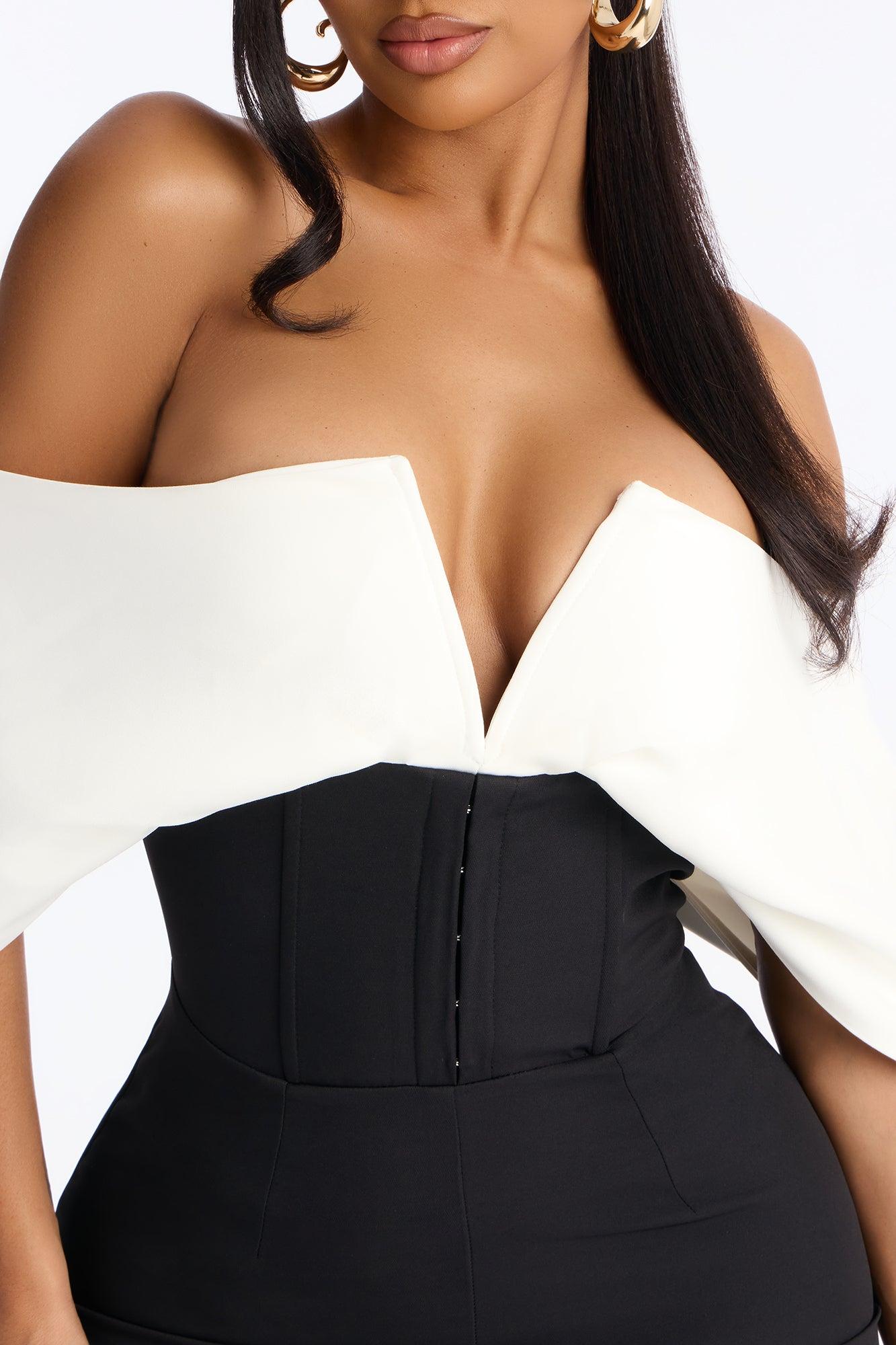 Kyla Off Shoulder Corset Jumpsuit - Black/White Female