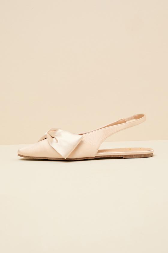 Crafted from woven satin for a chic and sleek effect, these elegant flats are ready to elevate all your best holiday 'fits this season. A sophisticated pointed-toe upper boasts a classy bow detail and flows into a slender slingback strap (with a bit of elastic at the side for fit). Use in place of heels and pair with any special occasion look to instantly impress.