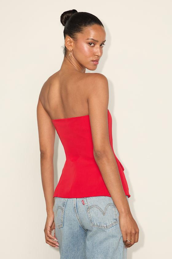 From date nights, late nights, and any other evening that requires a chic ensemble, this elevated tube top is ready to get the job done. Sleek ponte knit focuses on flattering the figure, while the strapless sweetheart neckline effortlessly shows off the décolleté. A decorative button placket and twin flap pockets complete the sophisticated design. Hidden no-slip strips and a hidden side zipper.