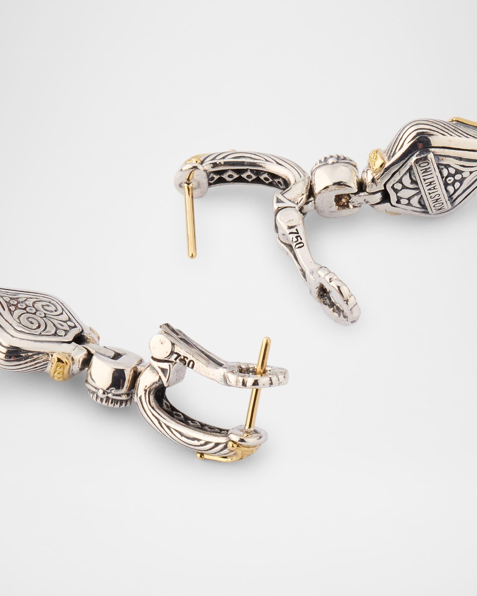 Konstantino huggie drop earrings Sterling silver and 18-karat yellow gold Two round-cut, faceted sky blue topaz Six round-cut, faceted amethyst Approx. 1.25"L For pierced ears Made in Greece