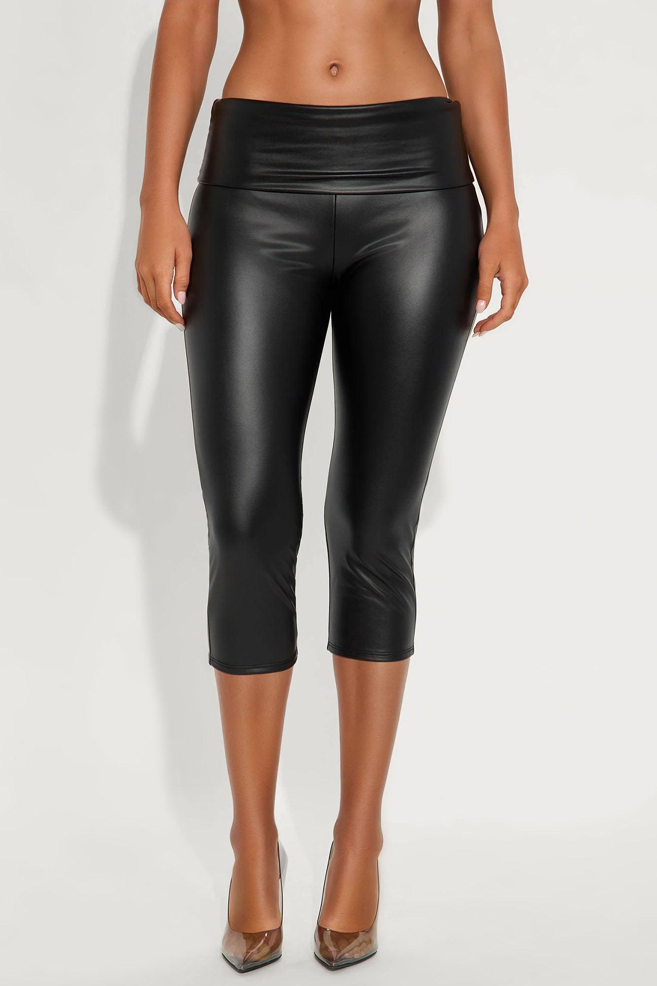 Kyrie Foldover Waistband Faux Leather Capri Legging - Black Female