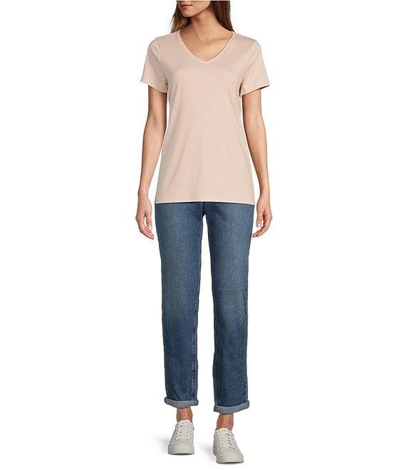 From L.L.Bean, these jeans feature:Soft-washed durable 10 oz. twill denim is hand sanded and slightly distressed for lived-in appealVintage-inspired style features our signature triple-needle stitching and hardware for durabilityRelaxed fit through the hip and thigh areaHigh-rise sits at the waistTapered straight-leg looks great rolled or unrolledBelt loops at waistbandFive-pocket stylingFront fly with zipper and button closureApprox. 28" rolled and 30" unrolled inseamCotton/polyester/spandexMachine washImported.