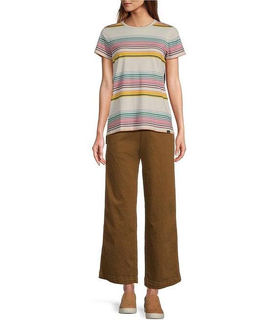 From L.L.Bean, these jeans feature: Soft-washed stretch denim is hand sanded and slightly distressed for lived-in appeal Vintage-inspired style features our signature triple-needle stitching and hardware for durability High-rise waist Five-pocket styling. Belt loops on waistband Wider leg provides a relaxed fit from the thigh to the ankle Ankle length Zip fly with button closure Approx. 28" inseam Cotton/polyester/elastane Machine wash and dry Imported.