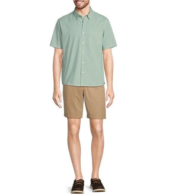 From L.L.Bean, this shirt features:Solid tonePoint collarShort sleevesLeft chest pocketButton-front closureUntucked FitSlightly FittedHidden wipe on hem for cleaning glasses or sunglassesQuick-drying; moisture-wickingStretch fabricLightweight poplin materialCotton/recycled polyester/elastaneMachine wash/tumble dryImported