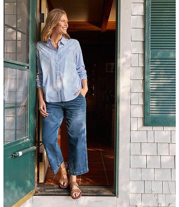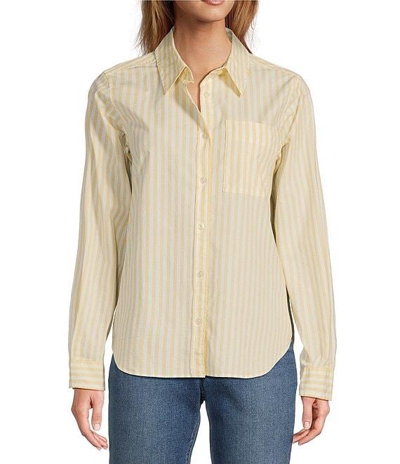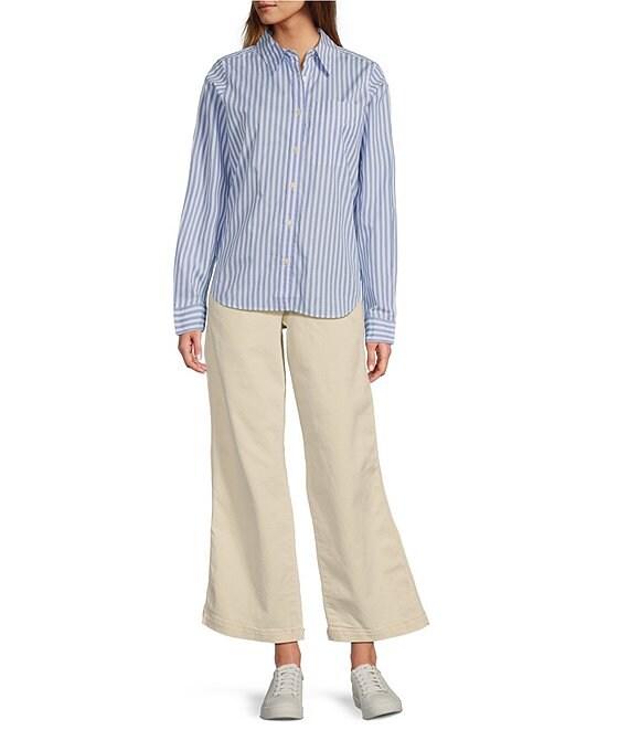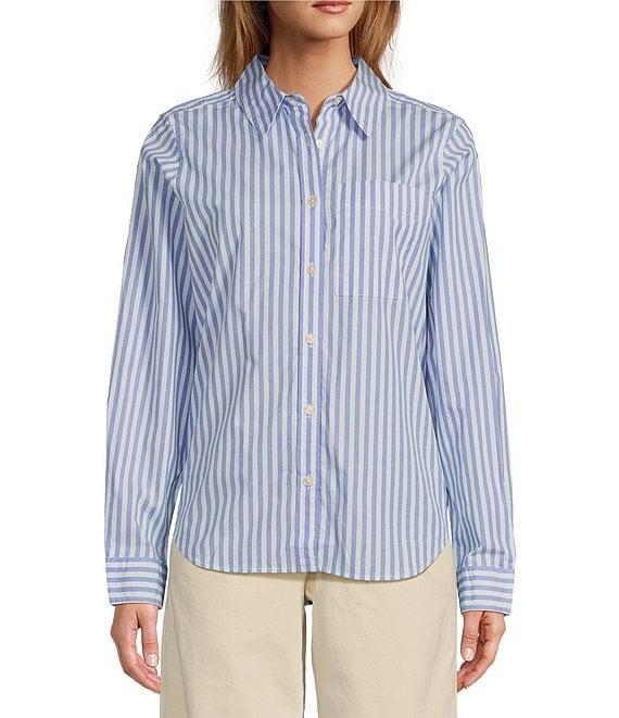 From L.L. Bean, this shirt features: Stretch poplin fabrication Stripe print Collar neckline Long sleeves Button down closure Relaxed fit Single chest pock detail Slightly curved hem detail Approx. 46.5" length Cotton/spandex Machine wash and dry Imported.