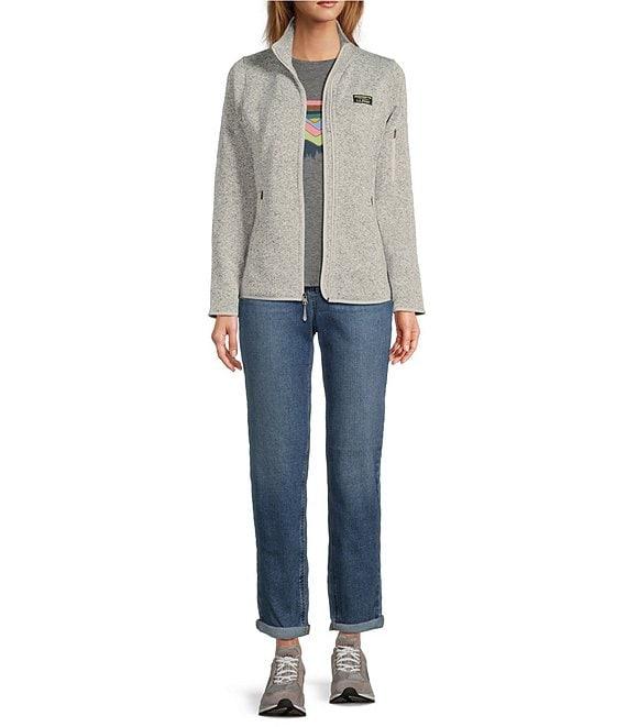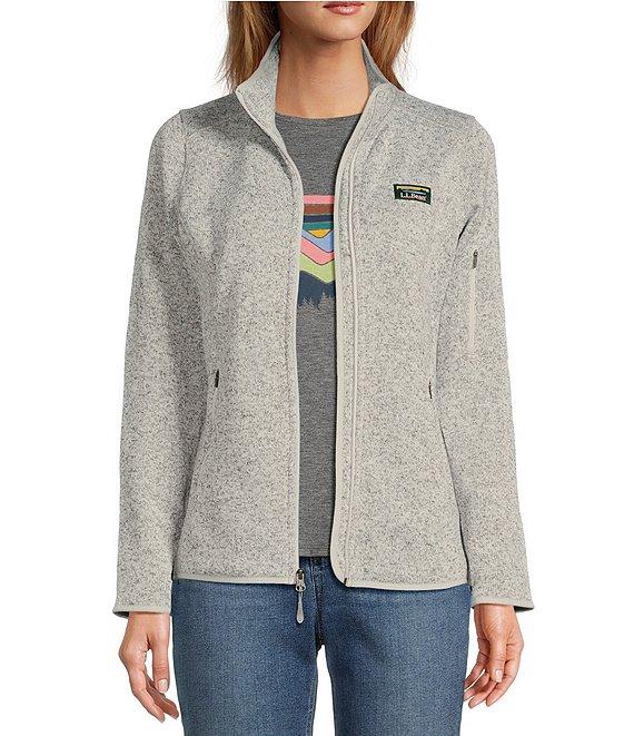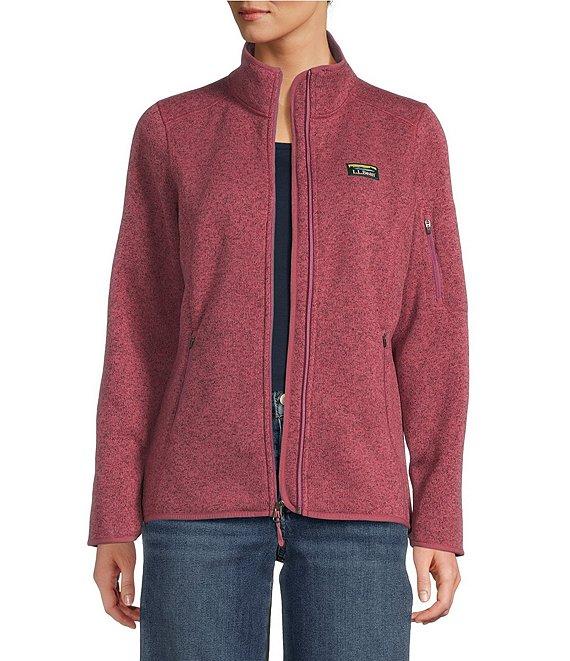 From L.L.Bean, this jacket features: Smooth, rugged sweater-knit exterior and soft, brushed interior for exceptional warmth and comfort Stand collar neckline Long sleeves with zippered pocket on left arm secures valuables Collar, cuffs and hem are reinforced with jersey binding Classic mount katahdin logo Slightly fitted to softly shape the body Falls at hip Side front pockets with zipper closure Drop tail hem for extra coverage Center front zipper closure with wind flap behind zipper seals out cold drafts Approx. 26" in length from high point of shoulder Polyester Machine wash Imported.