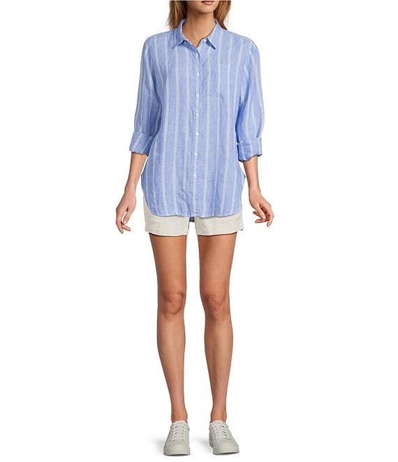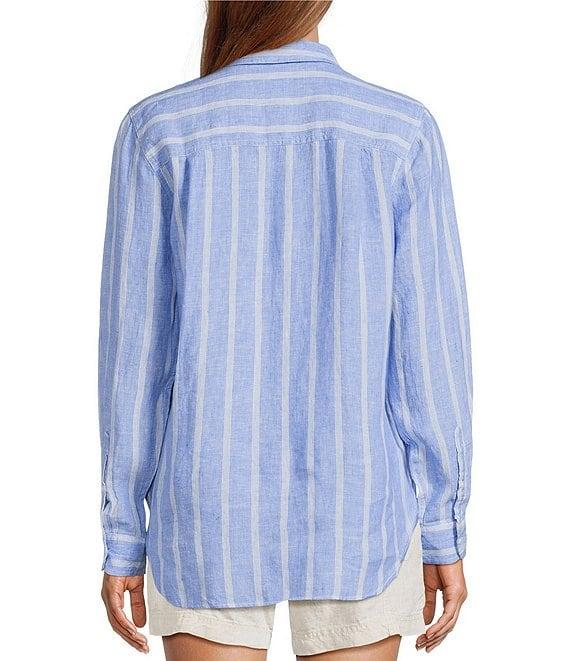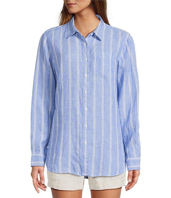 L.L.Bean Linen Long Sleeve Striped Button Front Tunic