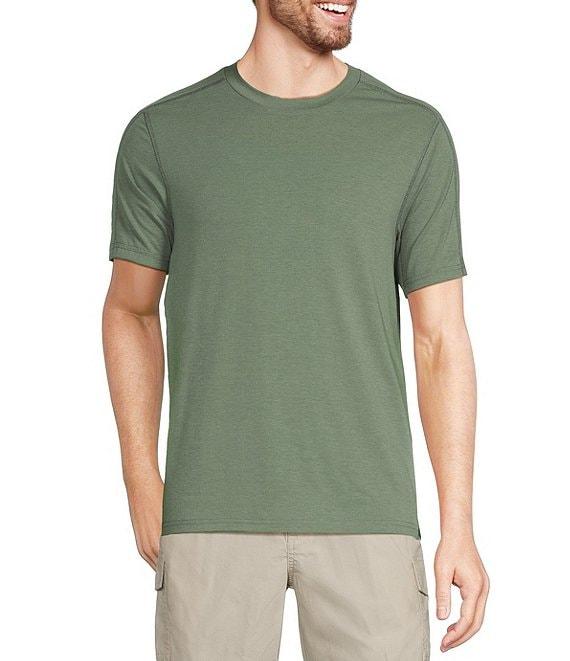 From L.L.Bean, this t-shirt features: Solid tone Slightly fitted Relaxed through the chest and sleeves Crew neckline Short sleeves Flat lock seams eliminate chafing Moisture-wicking Quick dry UPF 50 Sun Protection Stretch fabric Polyester/lyocell/elastane Machine wash Imported.