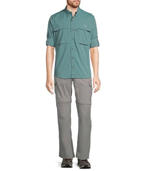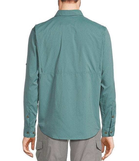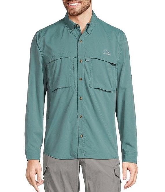 From L.L.Bean, this shirt features: Solid tone Point collar Long sleeves Tabs allow you to keep sleeves rolled up and in place even while casting Button-front closure Large front chest pockets Vertical security chest zip pocket Vertical back caping works well with fishing packs Sunglasses microfiber wipe on front shirt tail Lightweight Wrinkle-free UPF 50 fabric blocks at least 97.5% of the sun's UV rays Built-in stretch Polyester/nylon Machine wash Imported.
