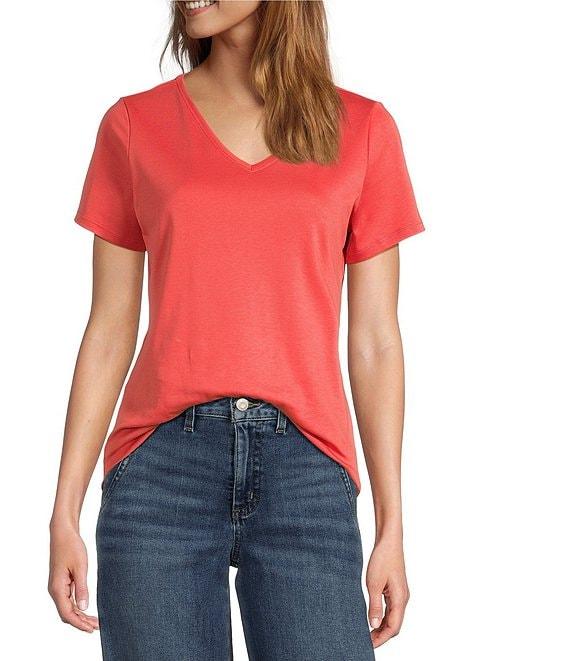 L.L.Bean Pima Cotton V-Neck Short Sleeve Tee Shirt