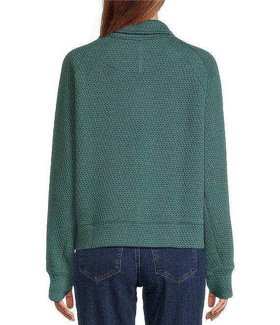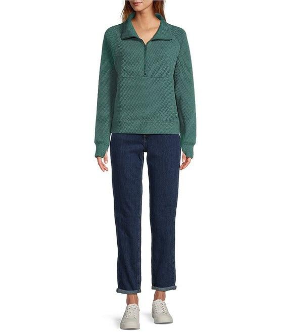 From L.L.Bean, this top features: Ridge knit texture fabrication Sweatshirt silhouette Stand collar neckline Long sleeves with thumbholes cuffs Kangaroo pocket Pill-resistant fabric wicks moisture and dries quickly Four-way stretch Half zip closure Oversize fit Straight hemline Pullover construction Polyester/tencel lyocell/spandex Machine wash Imported. Women's Ridgeknit Half-Zip Pullover, Oversized, Forest Spruce Product Details Made to perform and ready for anything, this textured sweatshirt has just-right comfort and stretch with a perfectly oversized fit. Plus, it looks just as great with your favorite hiking pants as it does with jeans. Size & Fit Relaxed Fit: Our most generous fit sits farthest from the body. Falls at hip. Why We Love It If comfort and versatility excites you as much as it does us, this pullover is for you. Designed to provide an elevated look without sacrificing comfort, it's sure to become a closet staple for everything from BBQs to travel to lunchtime walks. Fabric & Care In a soft blend of 89% polyester, 10% TENCEL Lyocell and 1% spandex. Pill-resistant fabric wicks moisture and dries quickly. Four-way stretch lets you move freely and keeps it original shape. Machine wash and dry. Additional Features Deep half-zip for easy on/off. Kangaroo pocket. Thumbholes at cuffs for easy hand warming.
