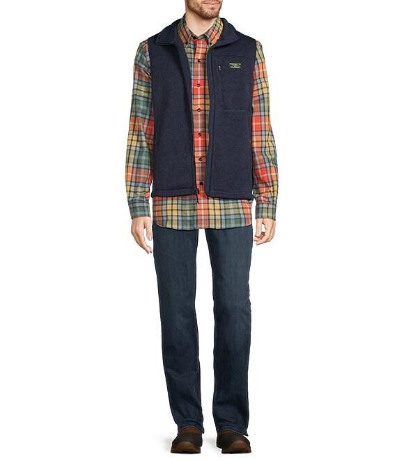From L.L.Bean, this vest features:slightly fittedMock neckCollar and arm openings have reinforced jersey bindingFull front-zip closureZippered pocket with classic Mount Katahdin logo on the left side of chestWind flap behind zipper2 x zippered hand pocketsRelaxed through the chest and sleeveSmooth, rugged sweater-knit exteriorSoft, brushed interiorPremium polyester fleeceMachine wash/tumble dryImported.