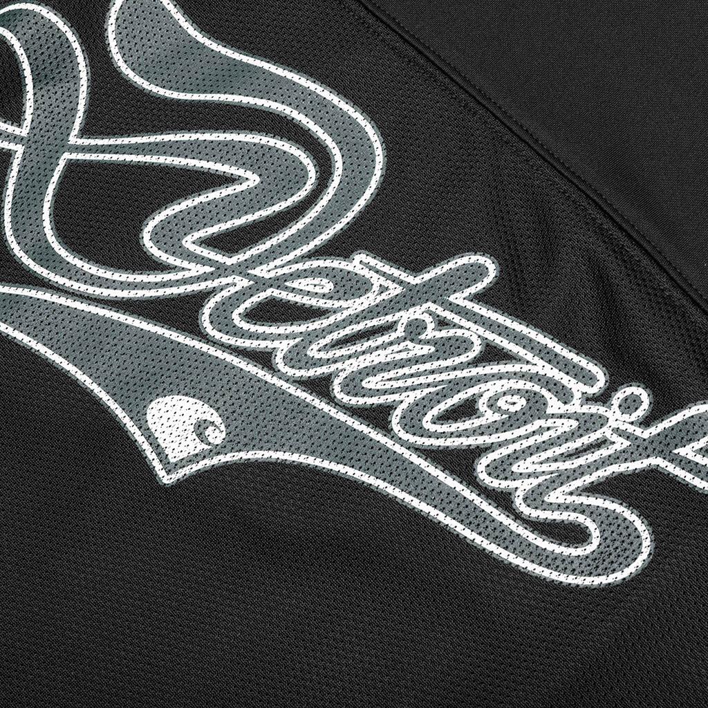 The L/S Detroit Mesh T-Shirt from Carhartt WIP is crafted from 100% polyester jacquard. Designed to have a relaxed, loose fit, it features breathable mesh-like panels and a piqué-knit upper body and sleeves. Contrast-color inserts on the sleeves and a matching V-neck collar elevate the look. Completed with a screen-printed graphic across the chest and woven Carhartt WIP label along the hem. 100% Polyester Loose fit V-neck collar Piqué sleeves and upper body Screen-printed graphic Woven Carhartt WIP label Style No: I034620-3A0XX I034620 BLAC