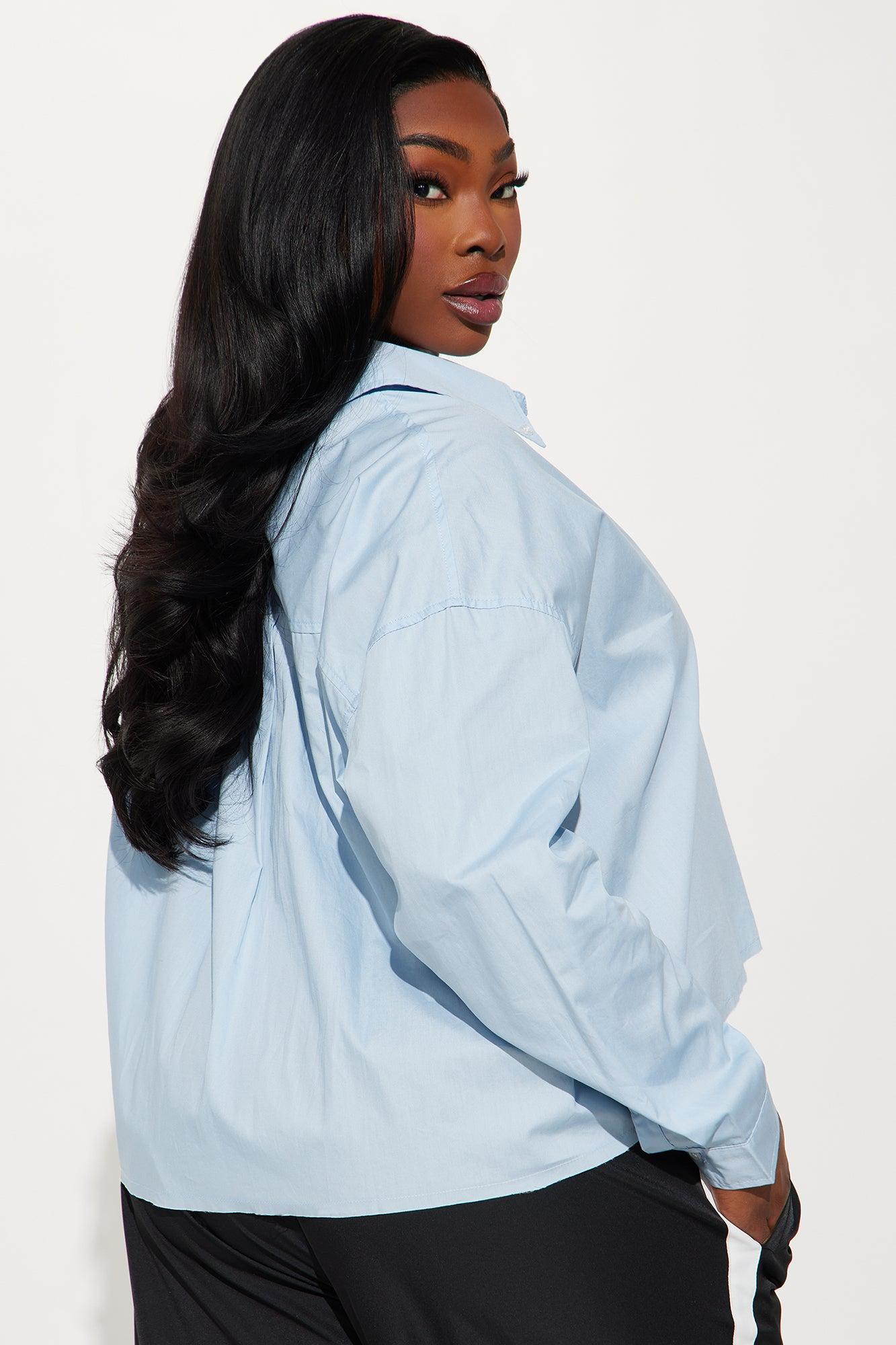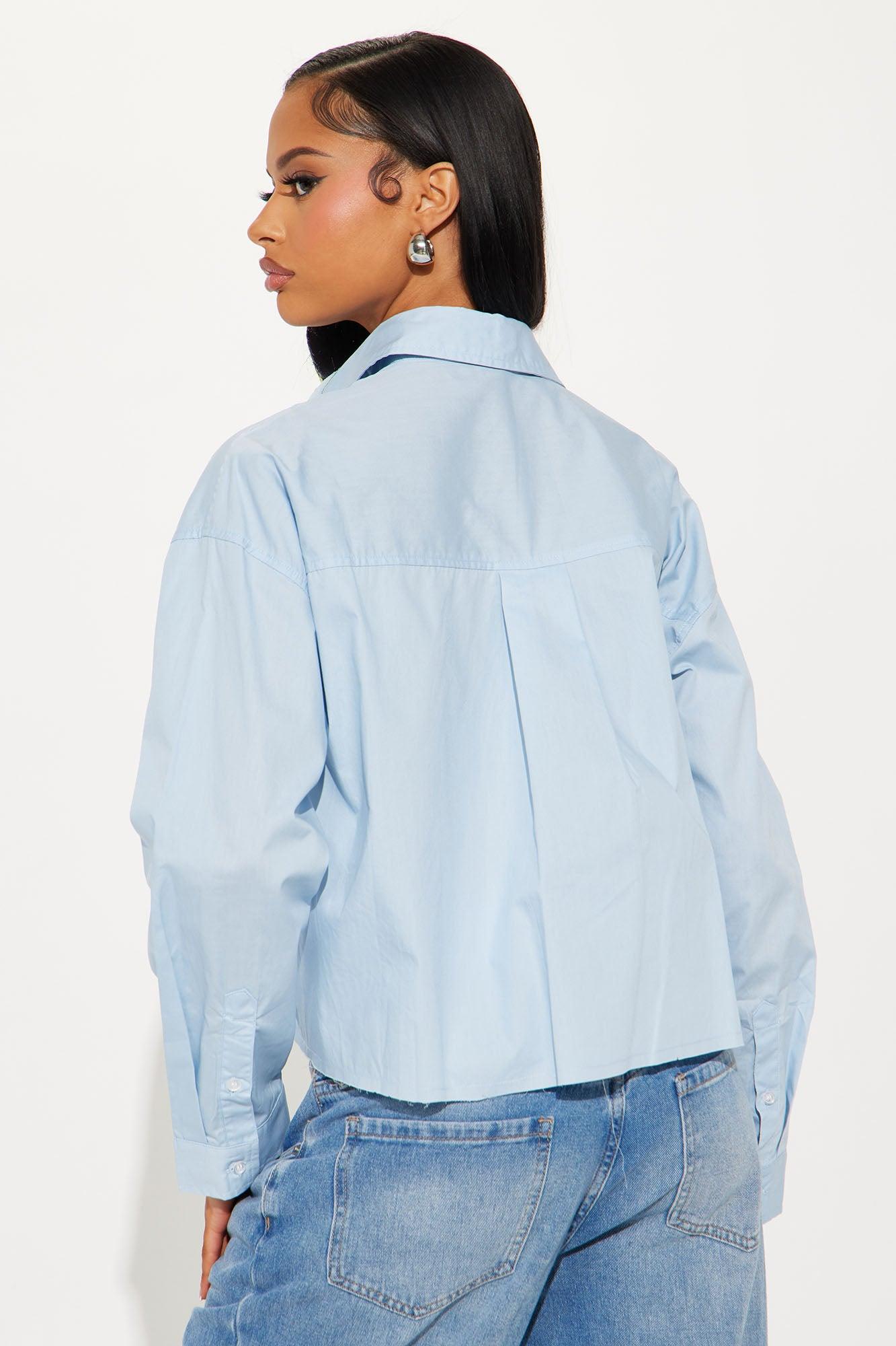 La Dolce Vita Poplin Cropped Shirt - Blue