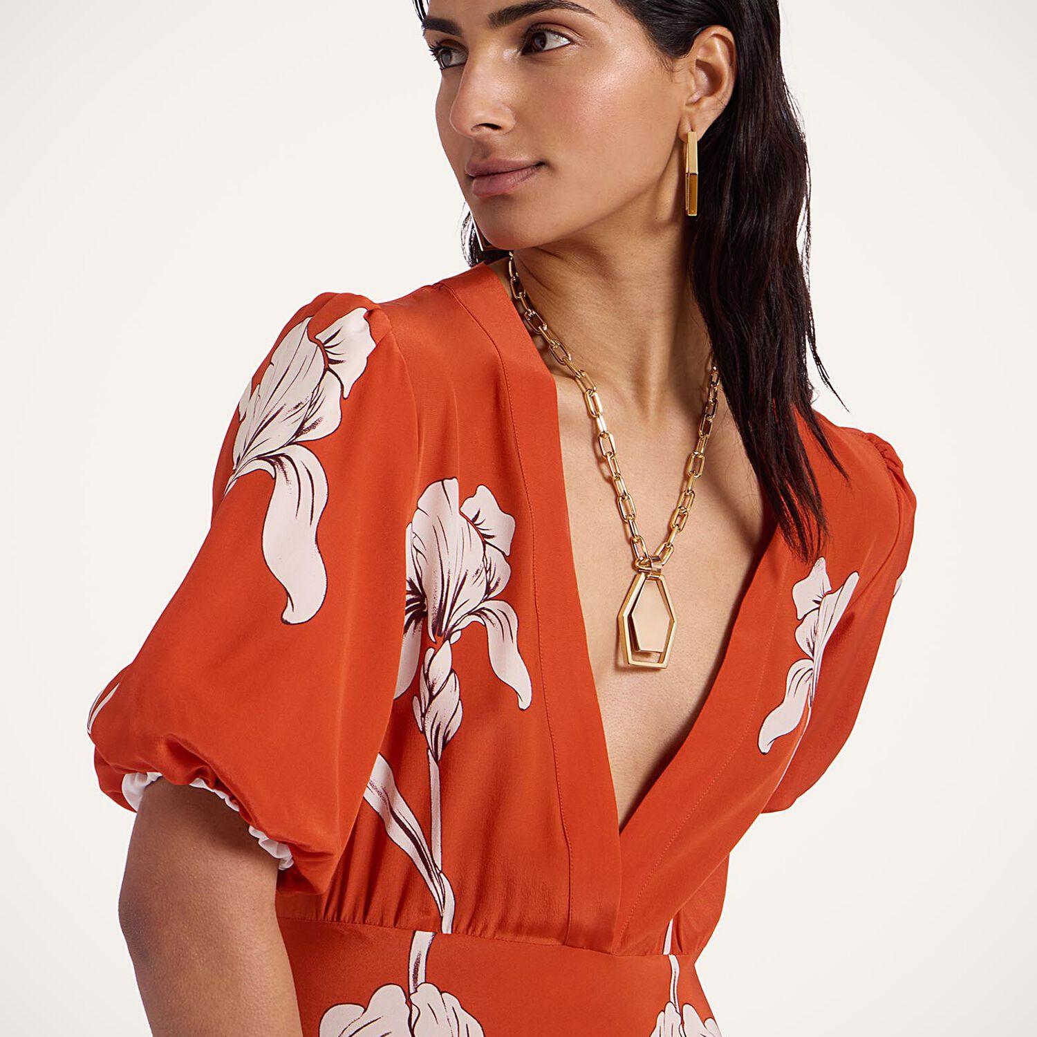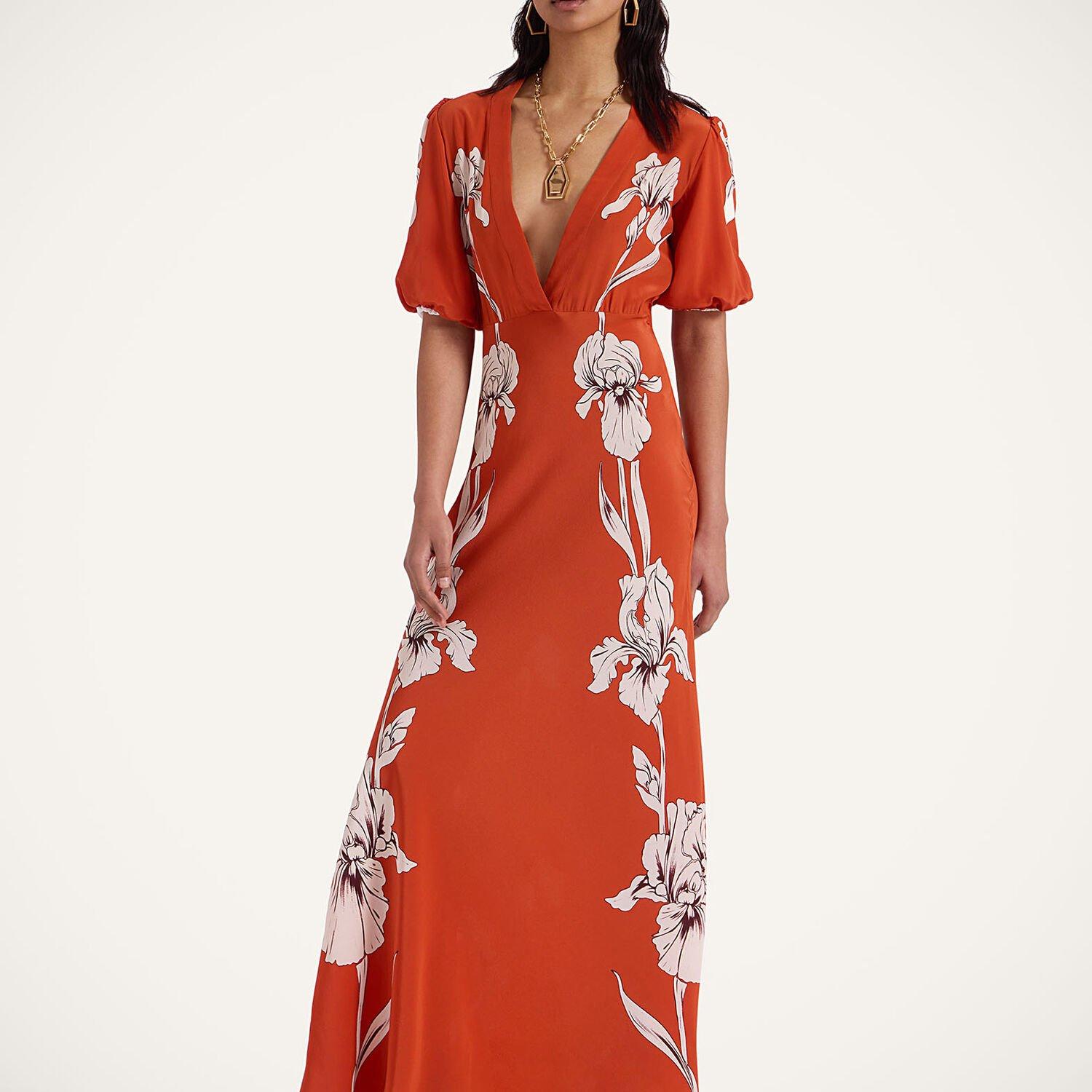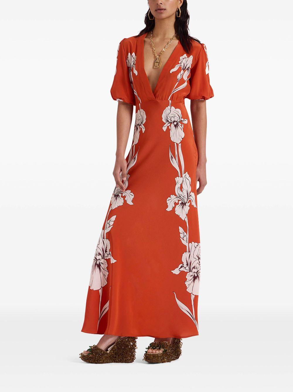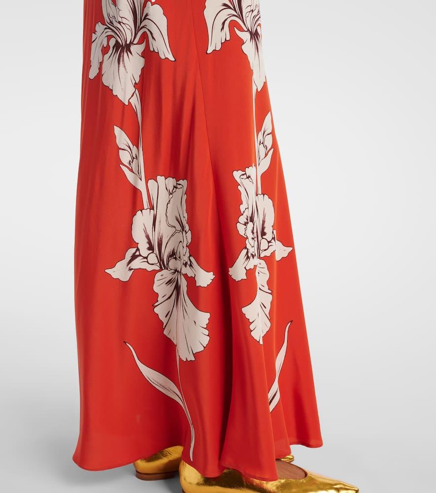 Shop La Doublej Marlene Floral-print Silk-crepe Maxi Dress In Iris Placée from 800+ stores, starting at $834. Cannot be shipped outside the USA Fabric: Lightweight, non-stretch silk crepe. Floral print. Maxi length. V neck. Short puff sleeves with elastic cuffs. Hidden zip at side. Shell: 100% silk. Unlined. Dry clean. Made in Italy. Measurements: Measurements from size S Length: 57.5in / 146.0cm, from shoulder
